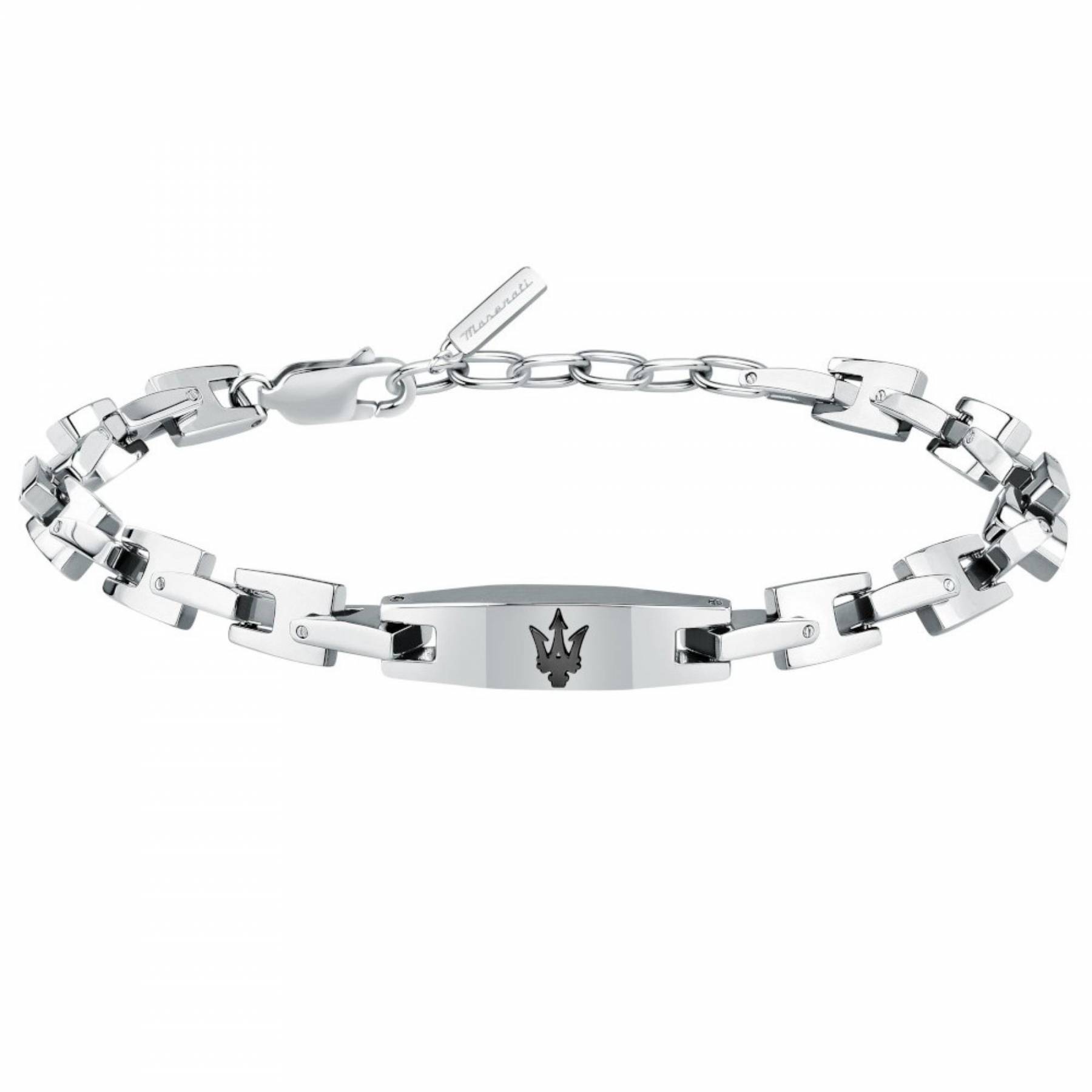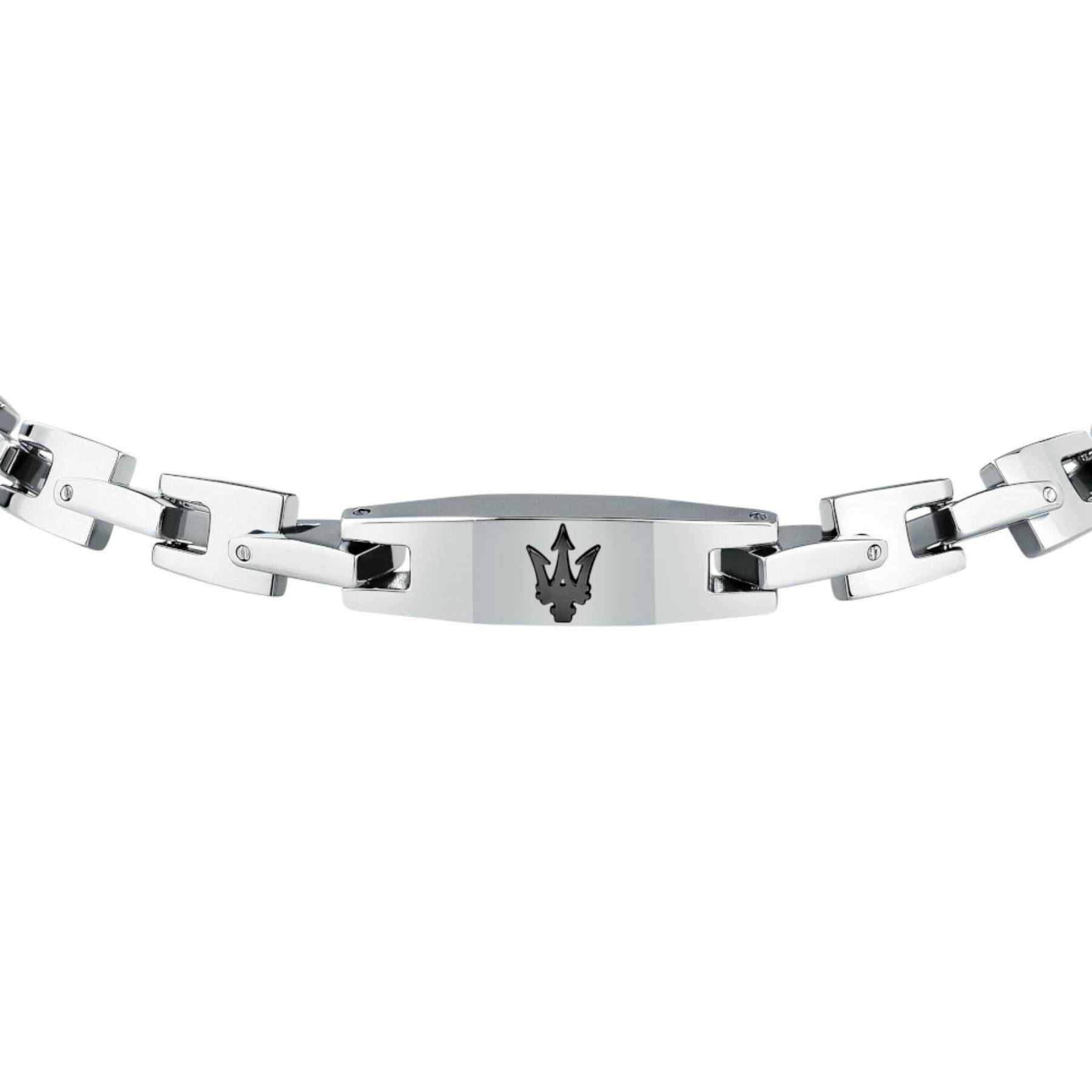 Ανδρικό βραχιόλι MASERATI από ανοξείδωτο ατσάλι. To βραχιόλι είναι ασημένιου χρώματος, με μαύρη τρίαινα και λογότυπο(19+3cm).