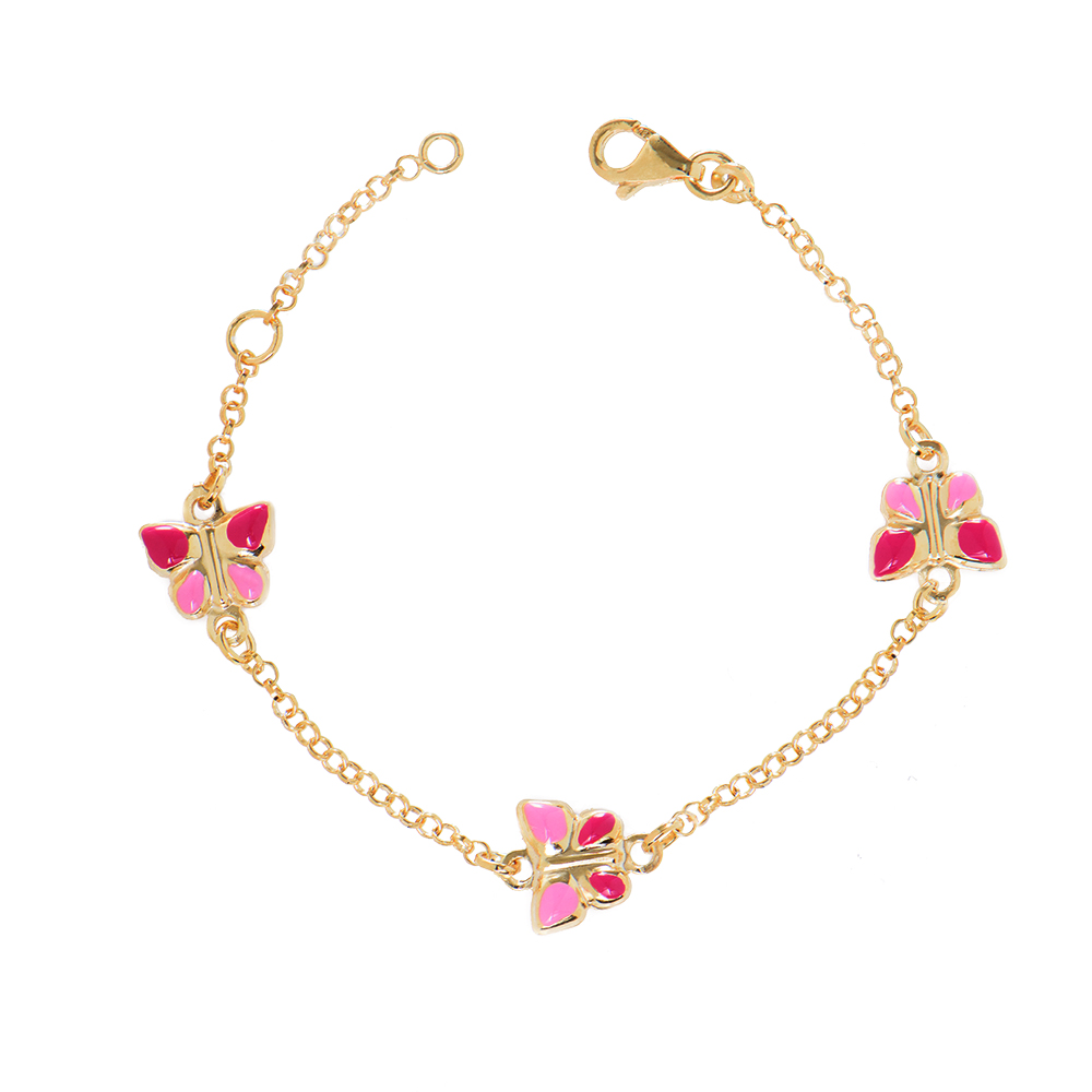 Ασημένιο βραχιόλι 925 σε κίτρινο χρώμα, στολισμένο με πεταλούδες.