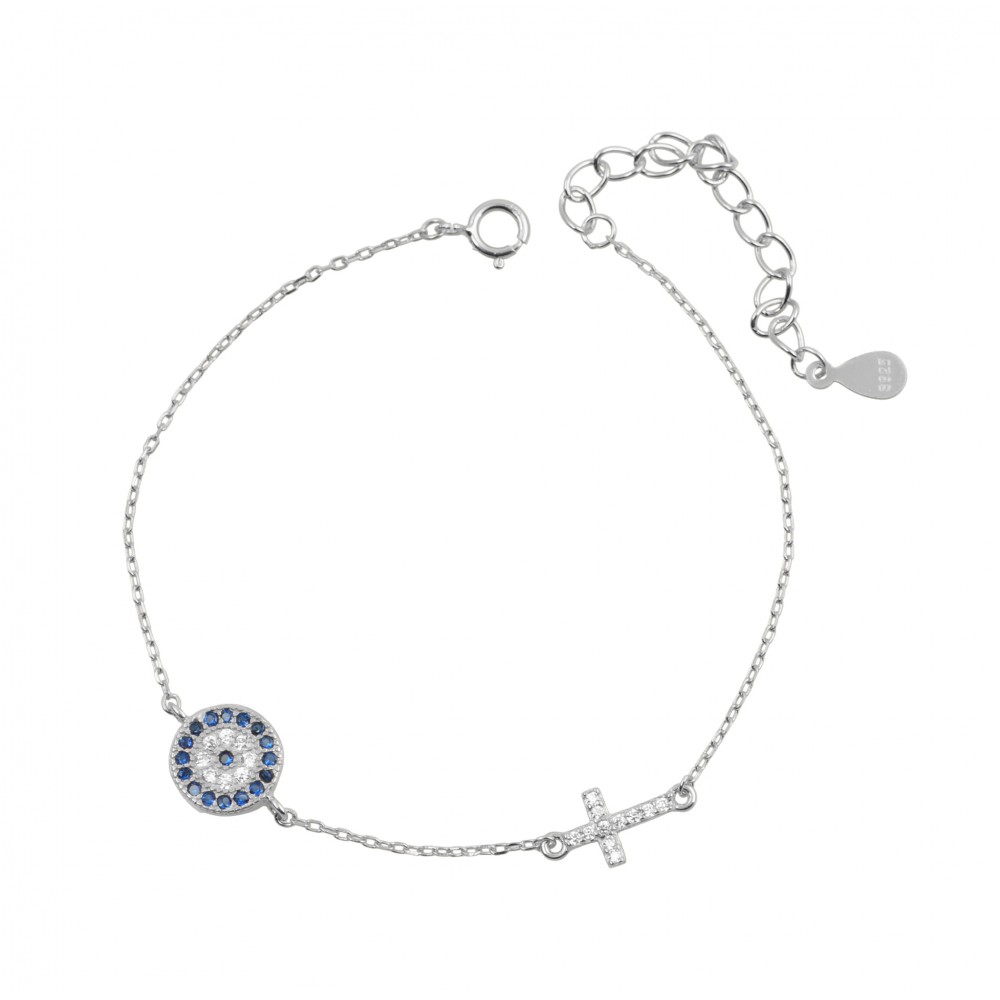 Ασημένιο Βραχιόλι 925 με Ματάκι και Σταυρό BE365