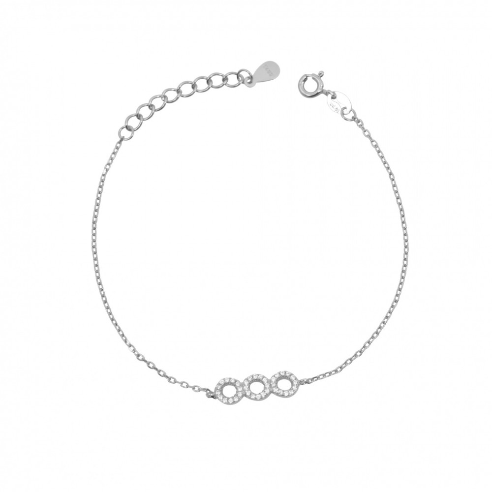 Κομψό ασημένιο βραχιόλι σε λευκό χρώμα με λευκές πέτρες ζιργκόν. Ένα διαχρονικό σχέδιο που συνδυάζει απλότητα και ρομαντισμό.