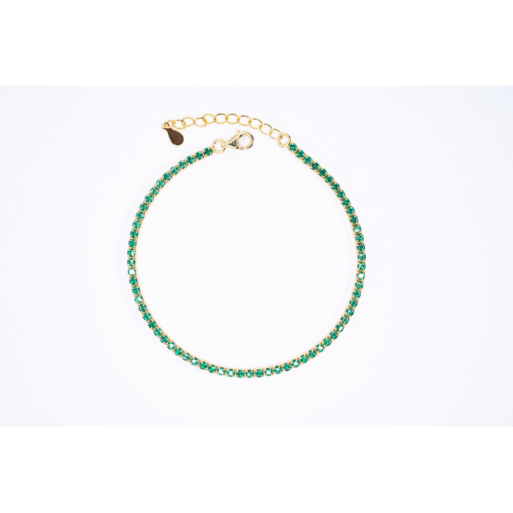 Ασημένιο Βραχιόλι Επιχρυσωμένο Ριβιέρα με Πράσινες Πέτρες Ζιργκόν