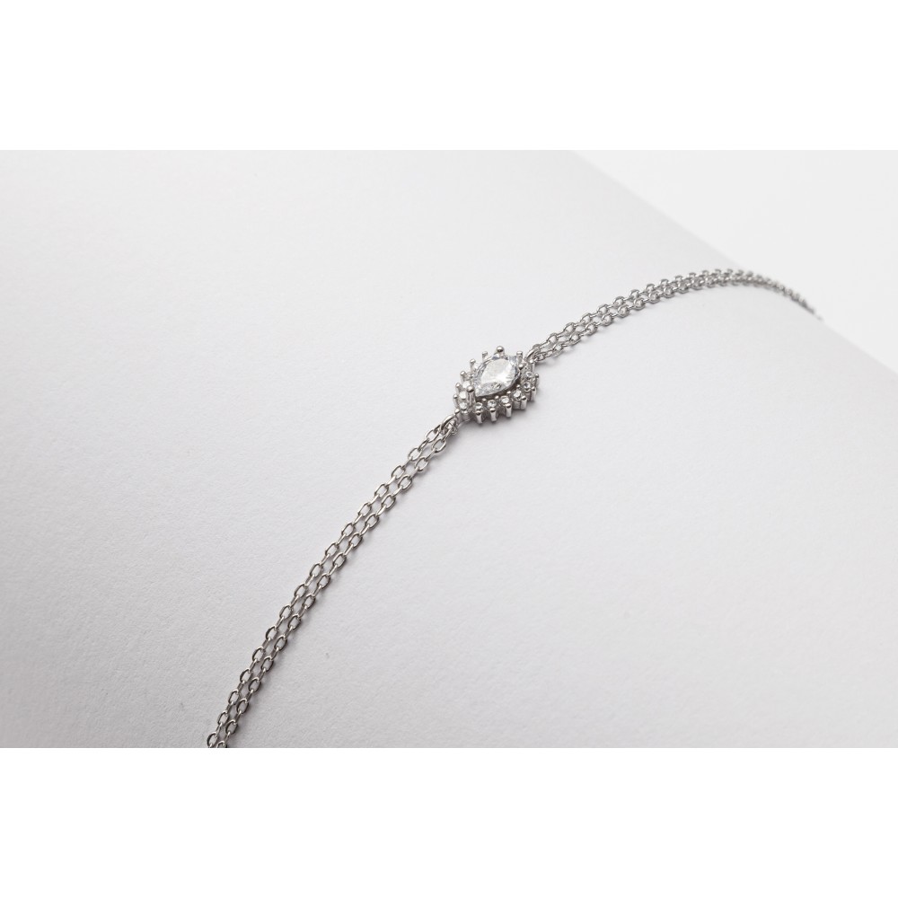 Ασημένιο βραχιόλι 925 σε λευκό χρώμα, με πέτρες ζιργκόν.