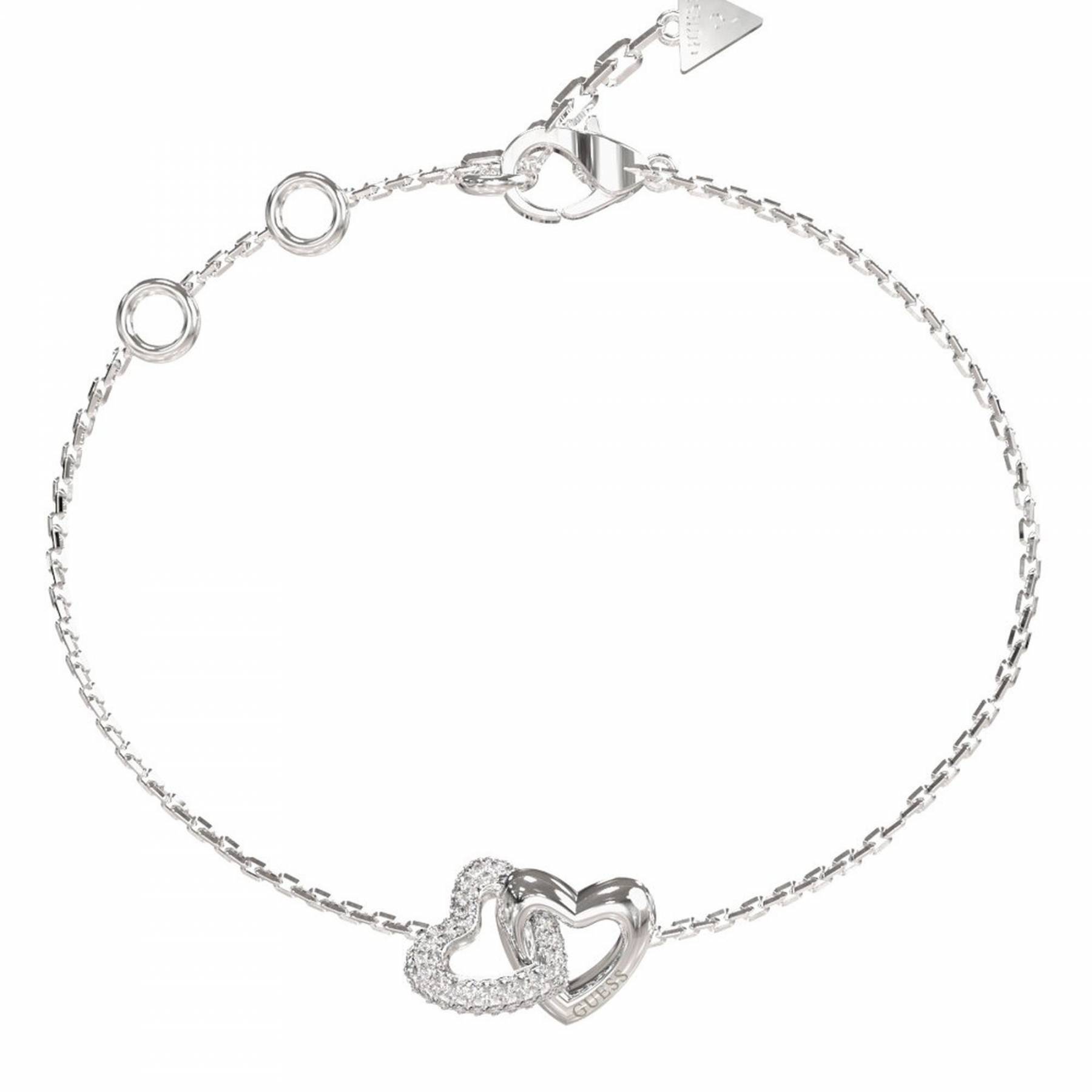 Γυναικείο βραχιόλι GUESS STEEL BELOVED JUBB06014JWRHL ασημένιου χρώματος με σχέδιο καρδιές με πέτρες και λογότυπο(21cm).