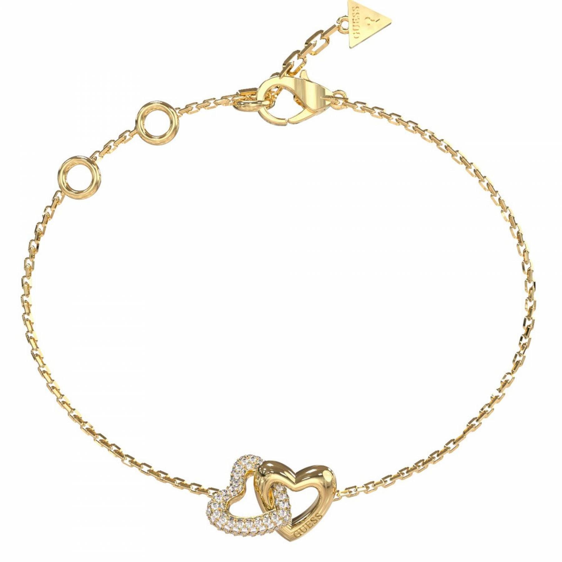 Γυναικείο βραχιόλι GUESS STEEL BELOVED JUBB06014JWYGL χρυσού χρώματος με σχέδιο καρδιές με πέτρες και λογότυπο(21cm).
