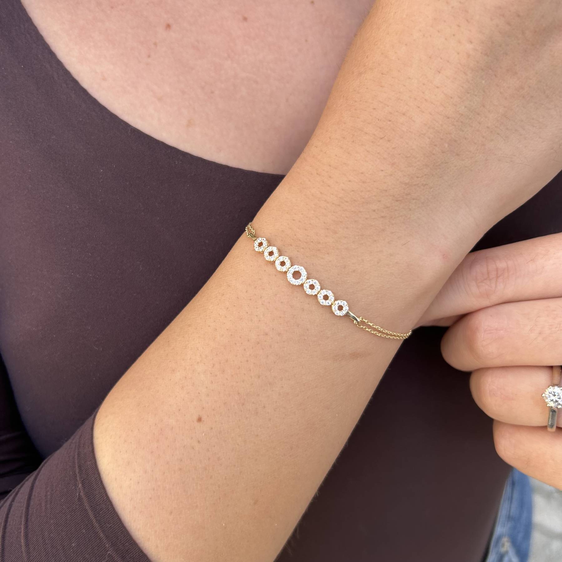 Εντυπωσιακό βραχιόλι σε κίτρινο χρυσό 14 καρατίων στολισμένο με πέτρες ζιργκόν.