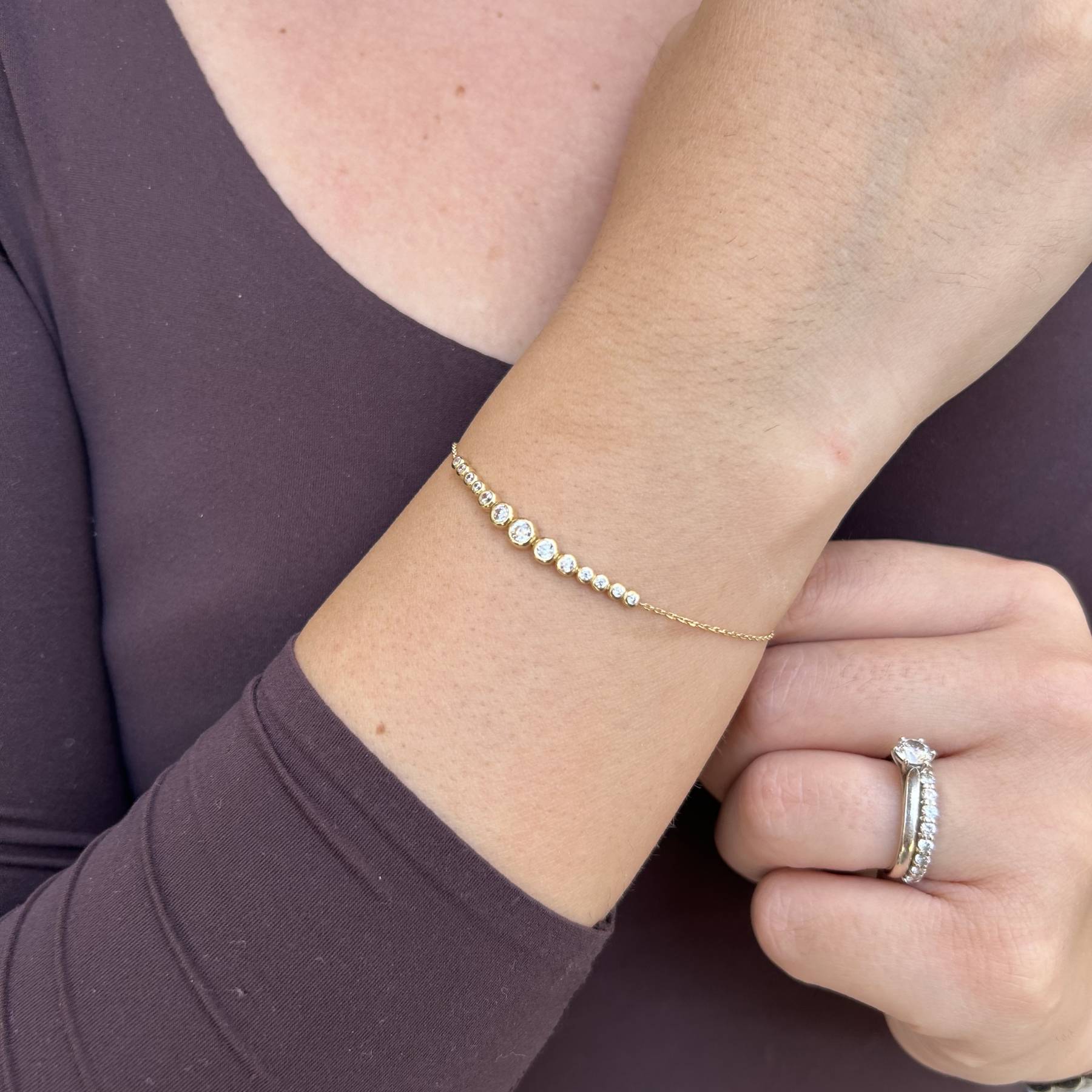 Εντυπωσιακό βραχιόλι σε κίτρινο χρυσό 14 καρατίων στολισμένο με πέτρες ζιργκόν.