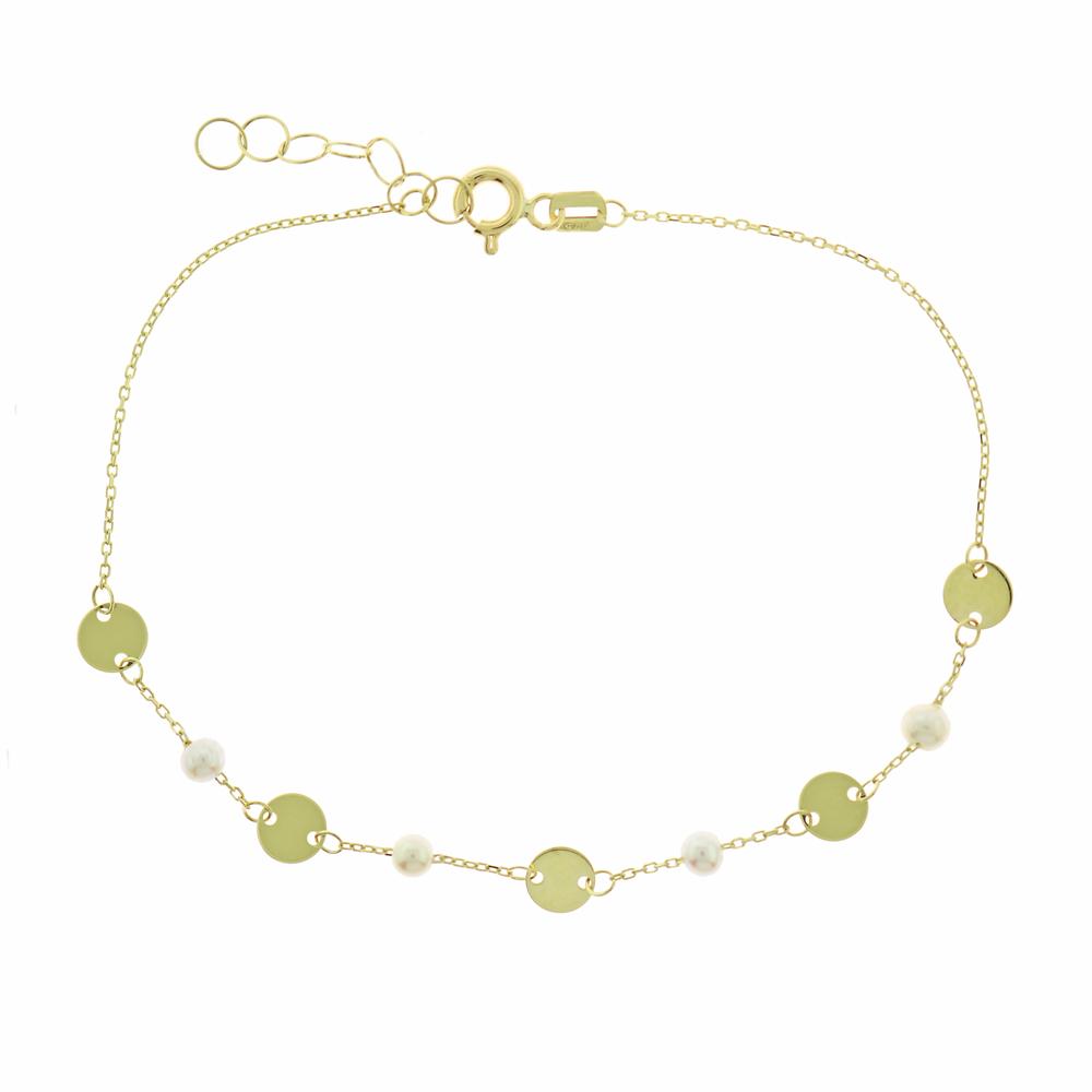 Βραχιόλι Κ9 Χρυσό με Δισκάκια και Μαργαριτάρια 3ni.1020mb