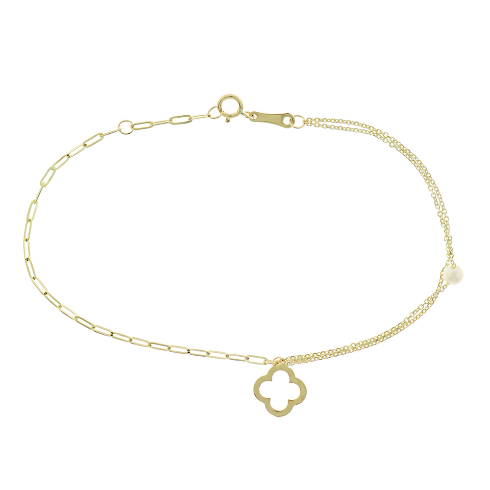 Βραχιόλι Κ9 Χρυσό με Σταυρό και Μαργαριτάρια 3pe.448b