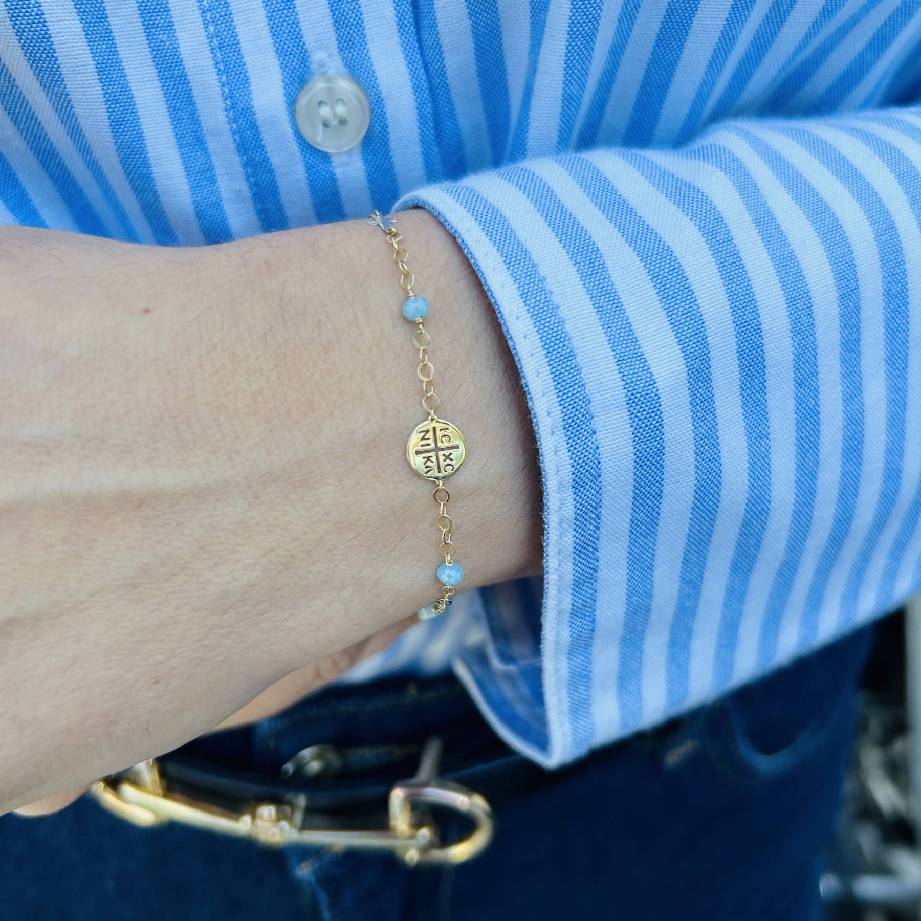Χρυσό Παιδικό Βραχιόλι με "Ματάκι" και Σταυρό 14 Καράτια