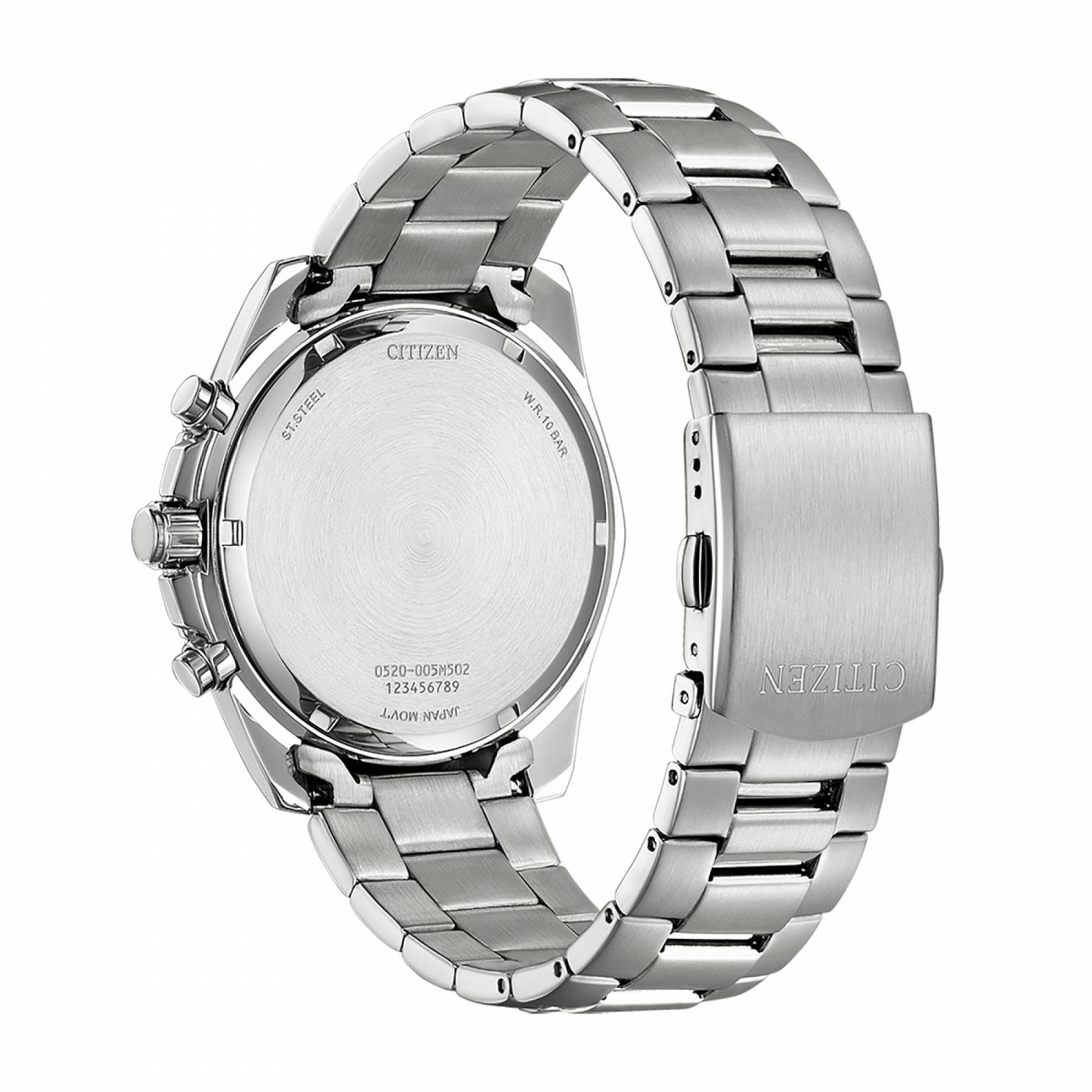 ΑΑθλητικό ρολόι χρονογράφος quartz με κάσα από ανοξείδωτο ατσάλι και λουρί, κρύσταλλο από ορυκτό γυαλί και καντράν σε ασημί απόχρωση. Εξοπλισμένο με caliber 0520, με λειτουργία χρονομέτρου, ένδειξη 24 ωρών, ημερομηνία και αντοχή στο νερό έως 10 bar. Διάμετρος κάσας: 44 mm, πλάτος μπρασελέ: 22 mm.
