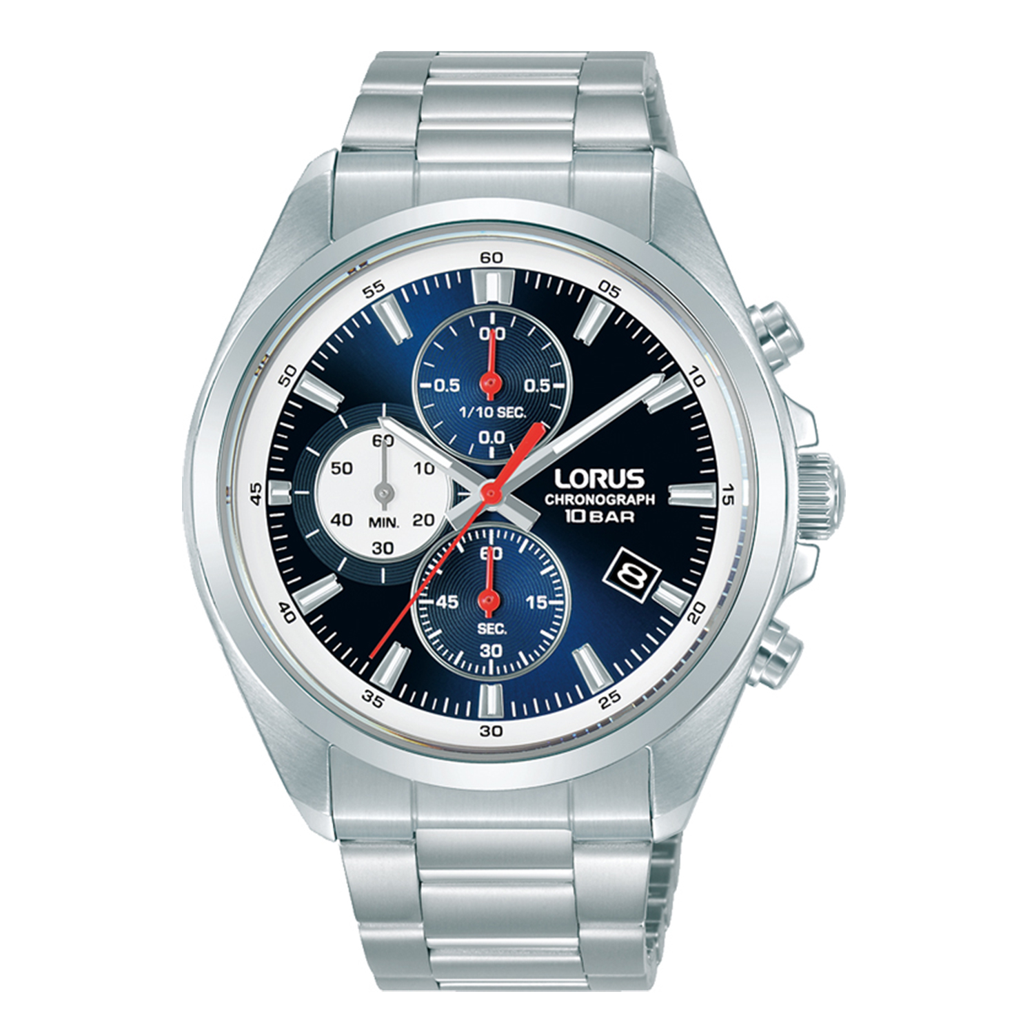 Ανδρικό ρολόι Lorus κατασκευασμένο από ανοξείδωτο ατσάλι με μπλε καντράν και ασημί μπρασελέ.