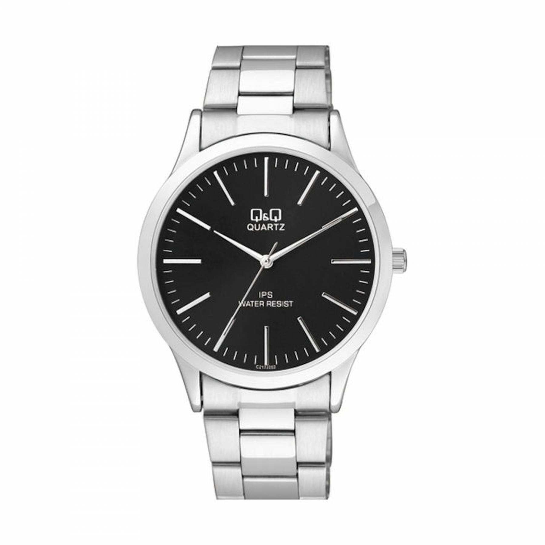 Q&Q Ρολόι με Ασημί Μπρασελέ και Μαύρο Καντράν C212J202Y
