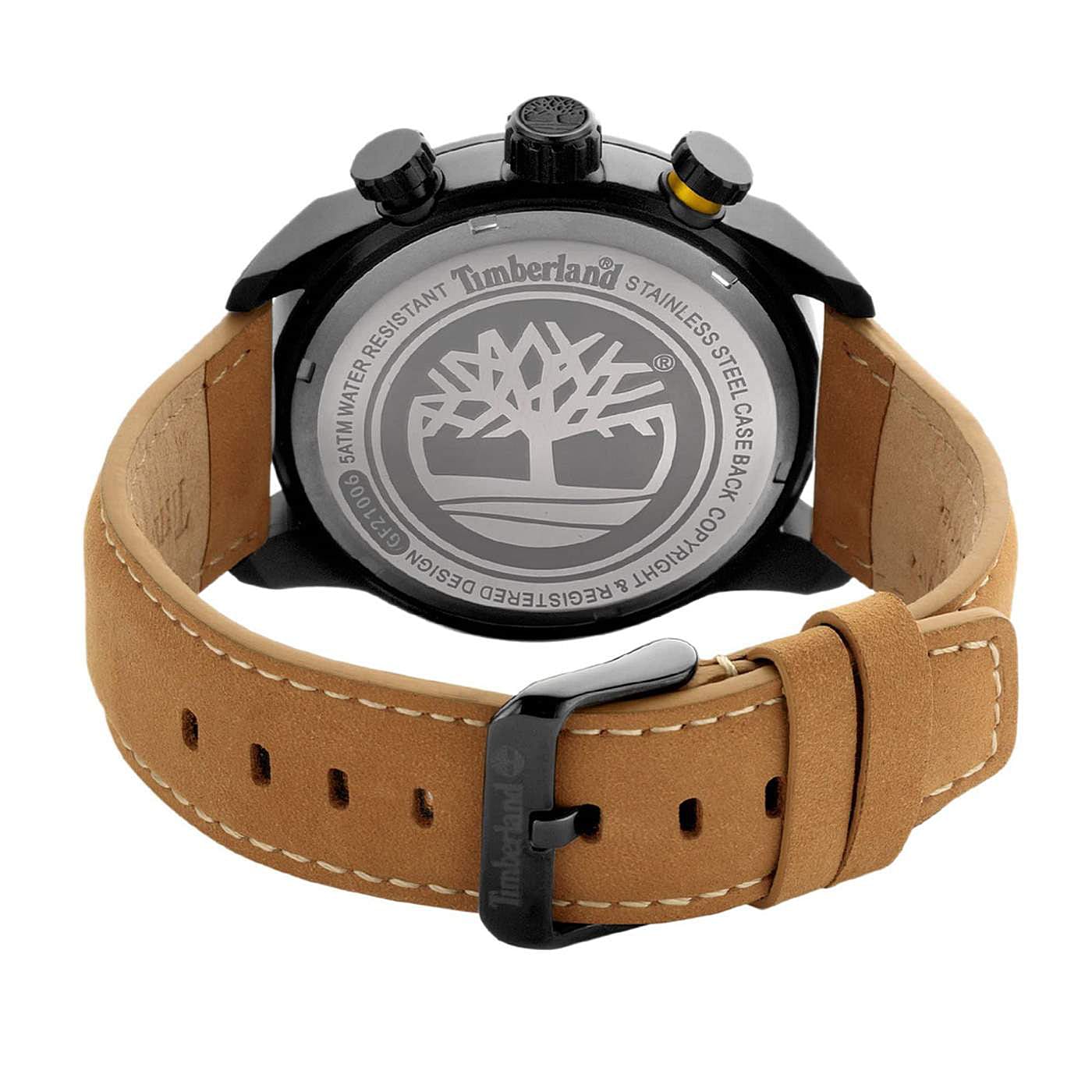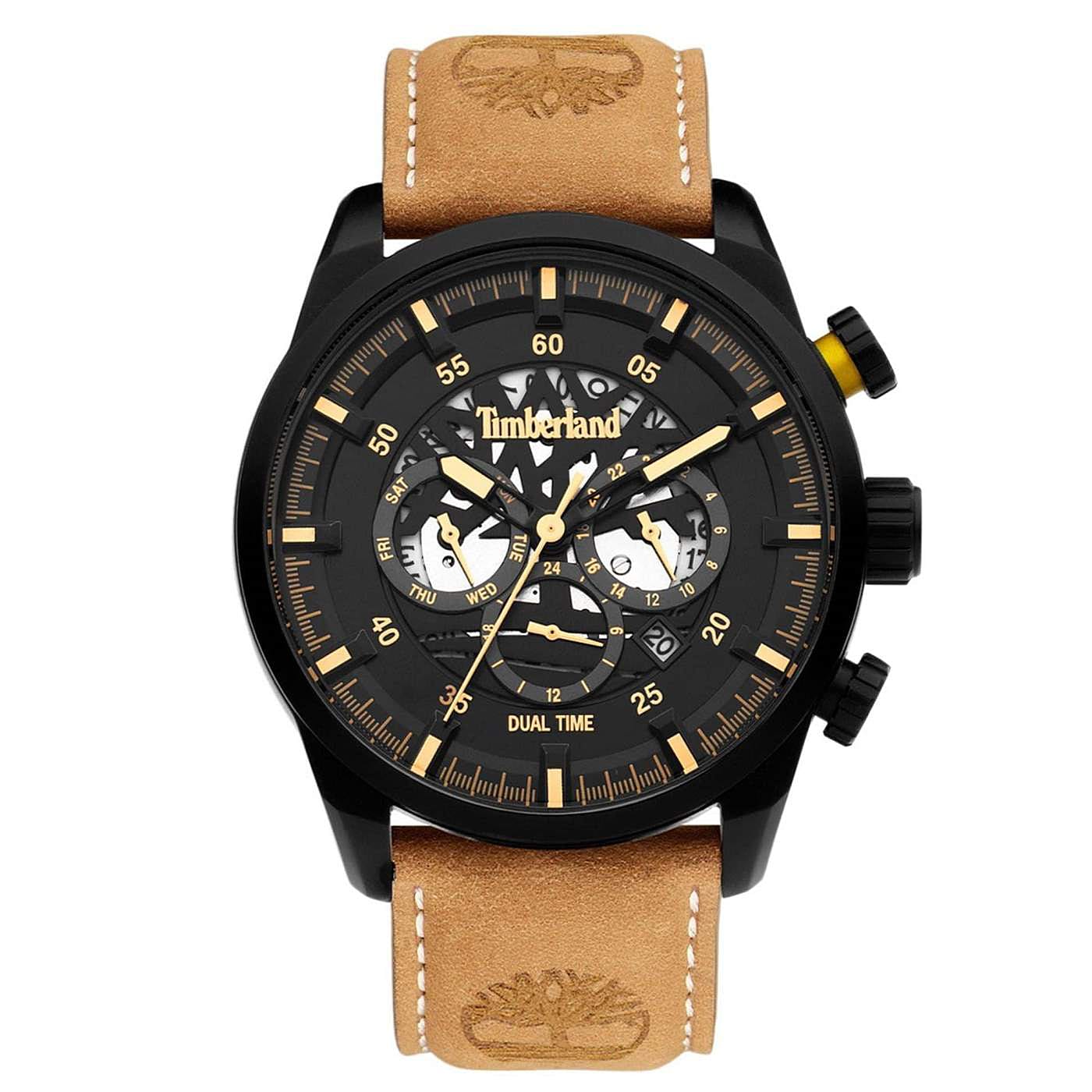• Ανδρικό ρολόι Timberland με καφέ δερμάτινο λουράκι κάσα από ανοξείδωτο ατσάλι.