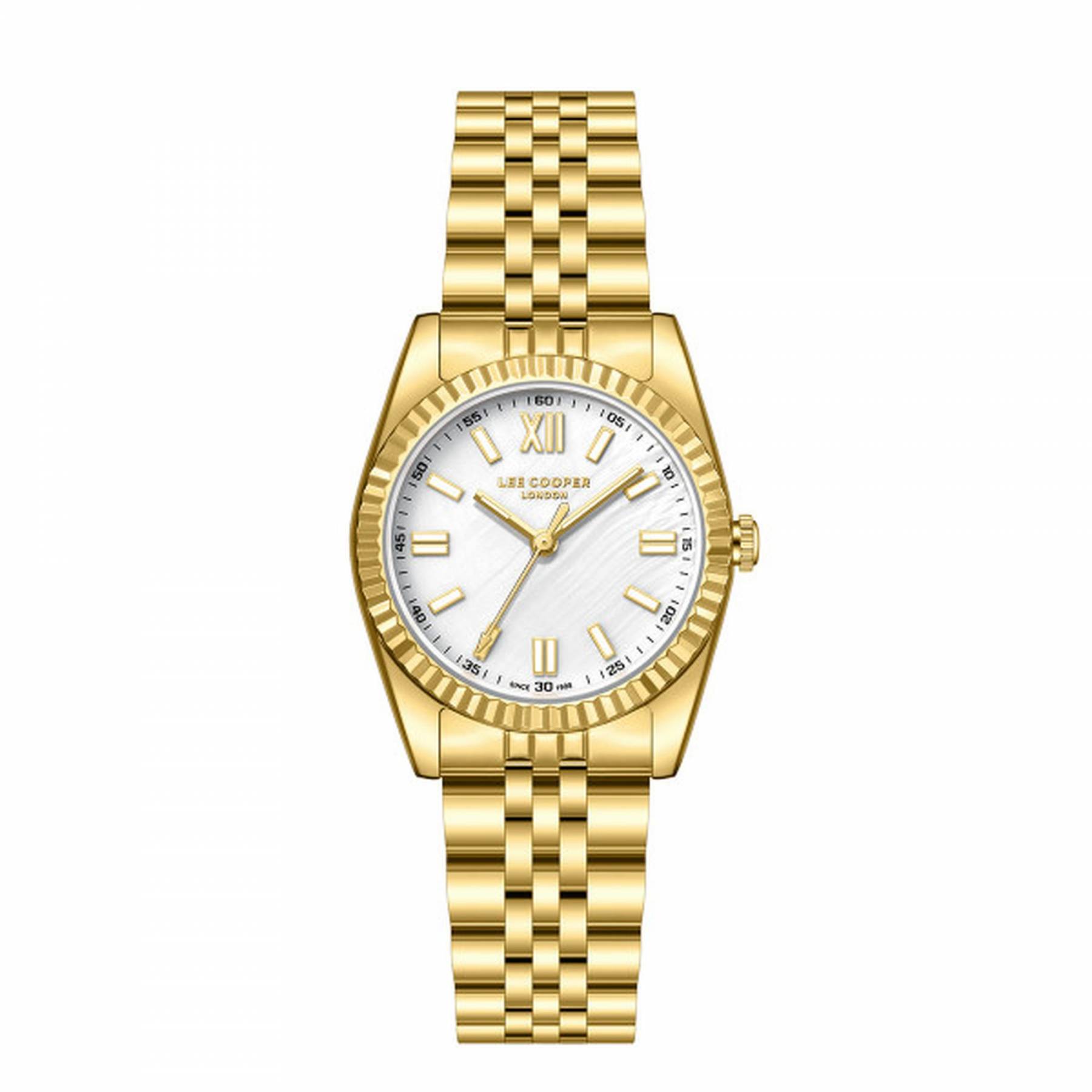 Γυναικείο ρολόι Lee Cooper με χρυσό μπρασελέ και ασημί καντράν.