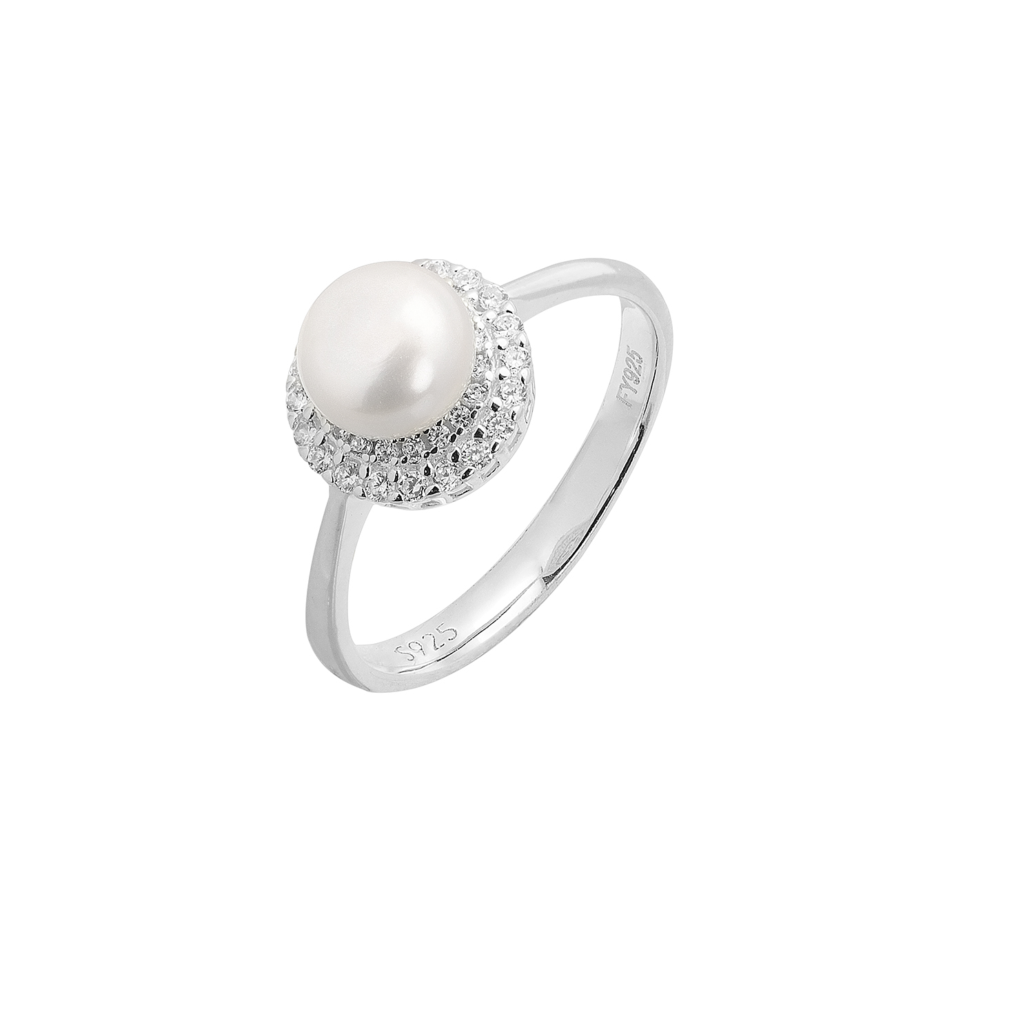 Ασημένιο Δαχτυλίδι με Μαργαριτάρι και Λευκές Πέτρες Ζιργκόν 5TU-RG006-1-56
