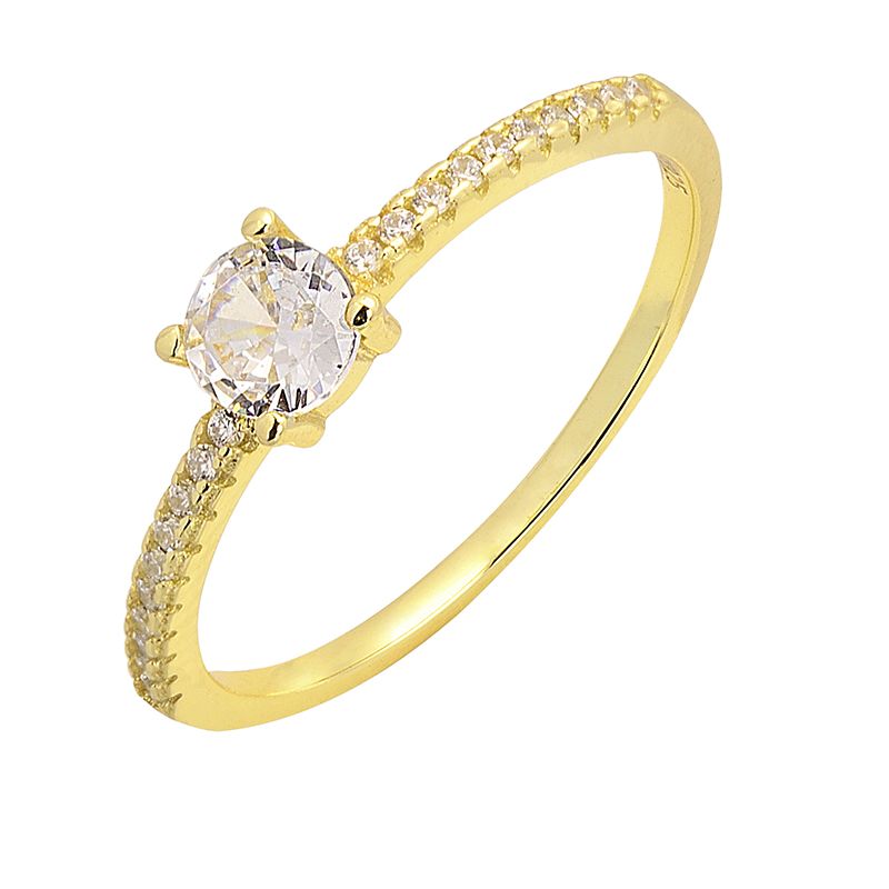 Ασημένιο δαχτυλίδι 925 σε κίτρινο χρώμα στολισμένο με πέτρες ζιργκόν.