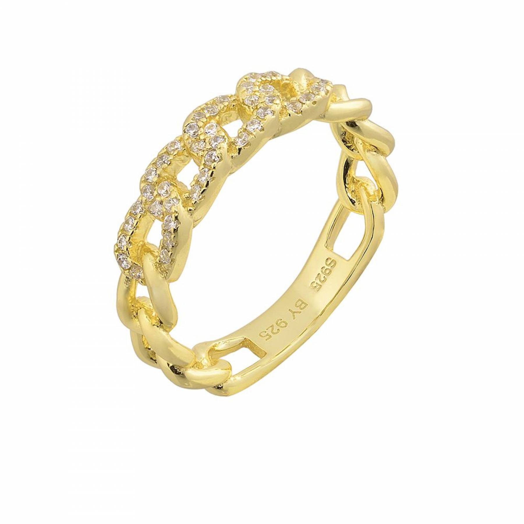 Ασημένιο δαχτυλίδι 925 σε κίτρινο χρώμα στολισμένο με πέτρες ζιργκόν.