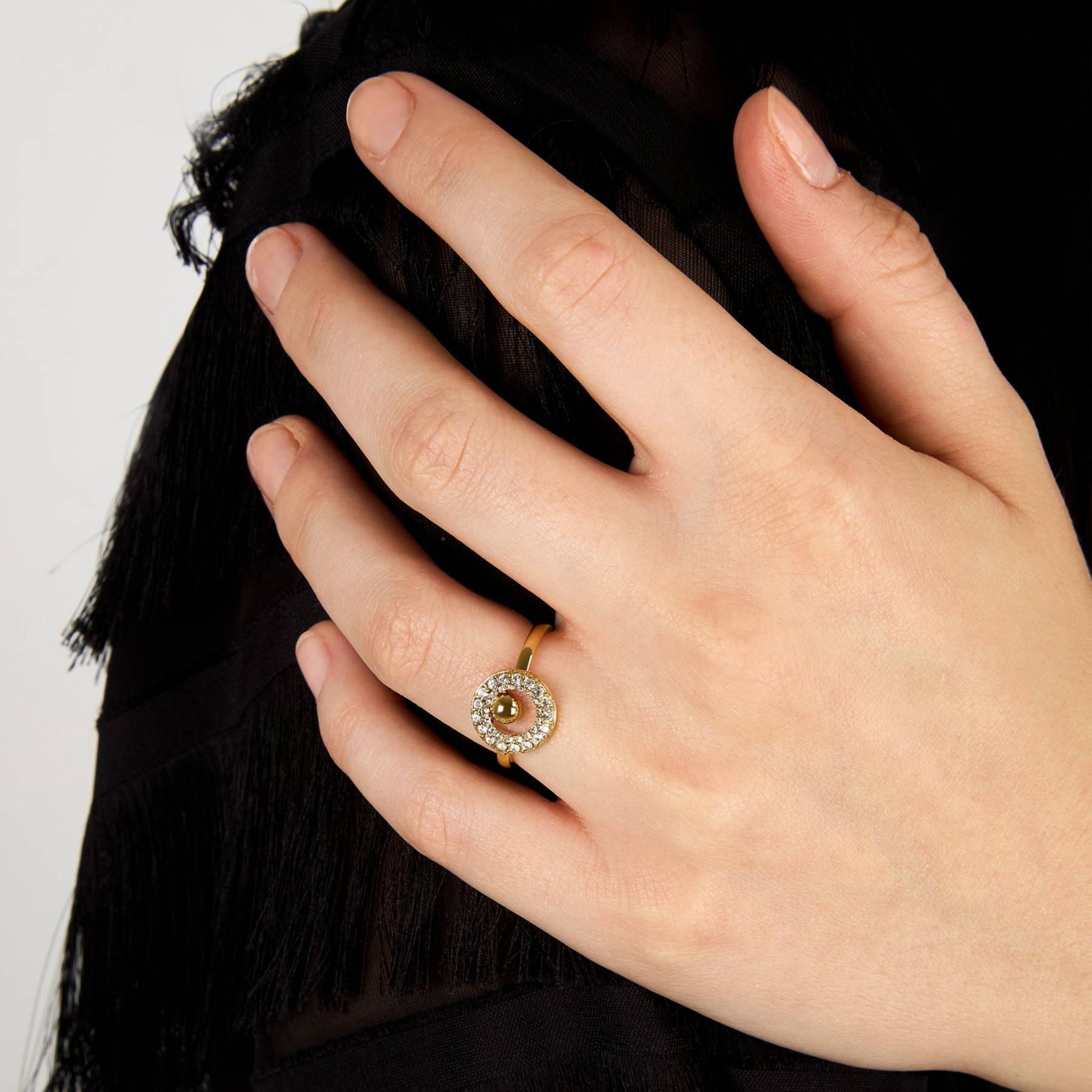 Γυναικείο δαχτυλίδι KARL LAGERFELD CRYSTALS KLAYC570-No.16 χρυσού χρώματος με πέτρες.