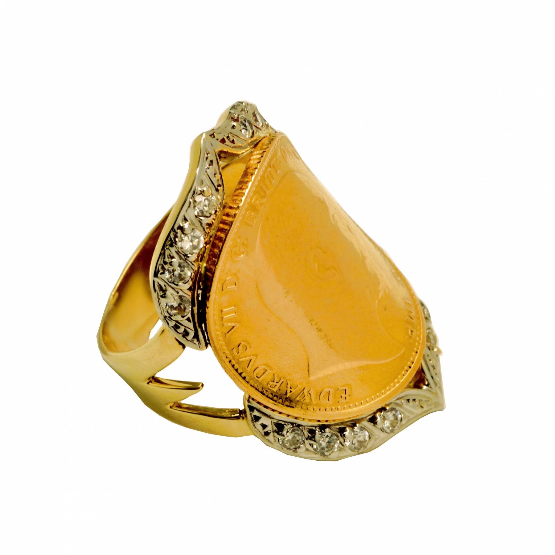Δαχτυλίδι από χρυσό 14 καρατίων με χρυσή Αγγλική Λίρα (22 καράτια) 1905 - Βασιλιάς Εδουάρδος ο Ζ' - P