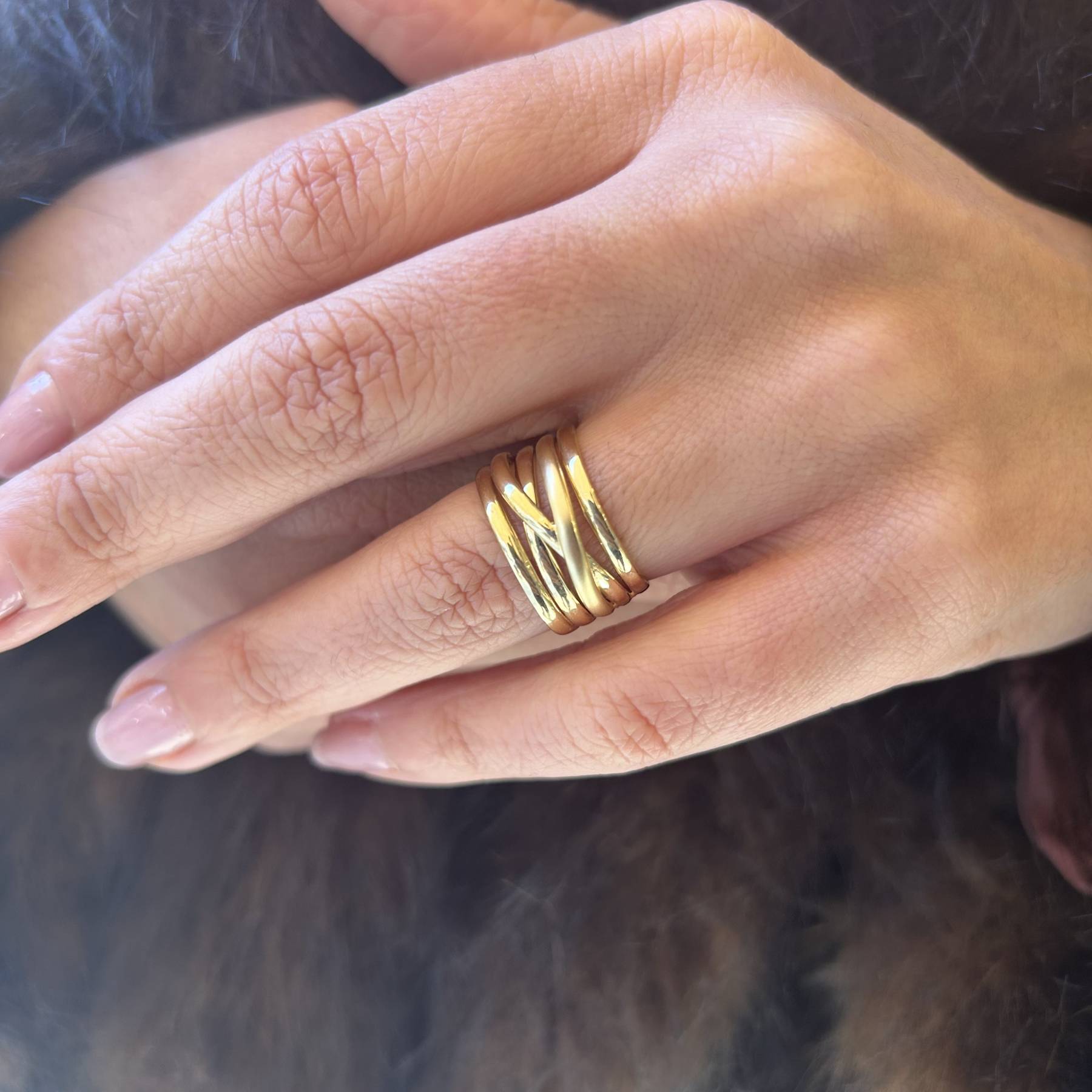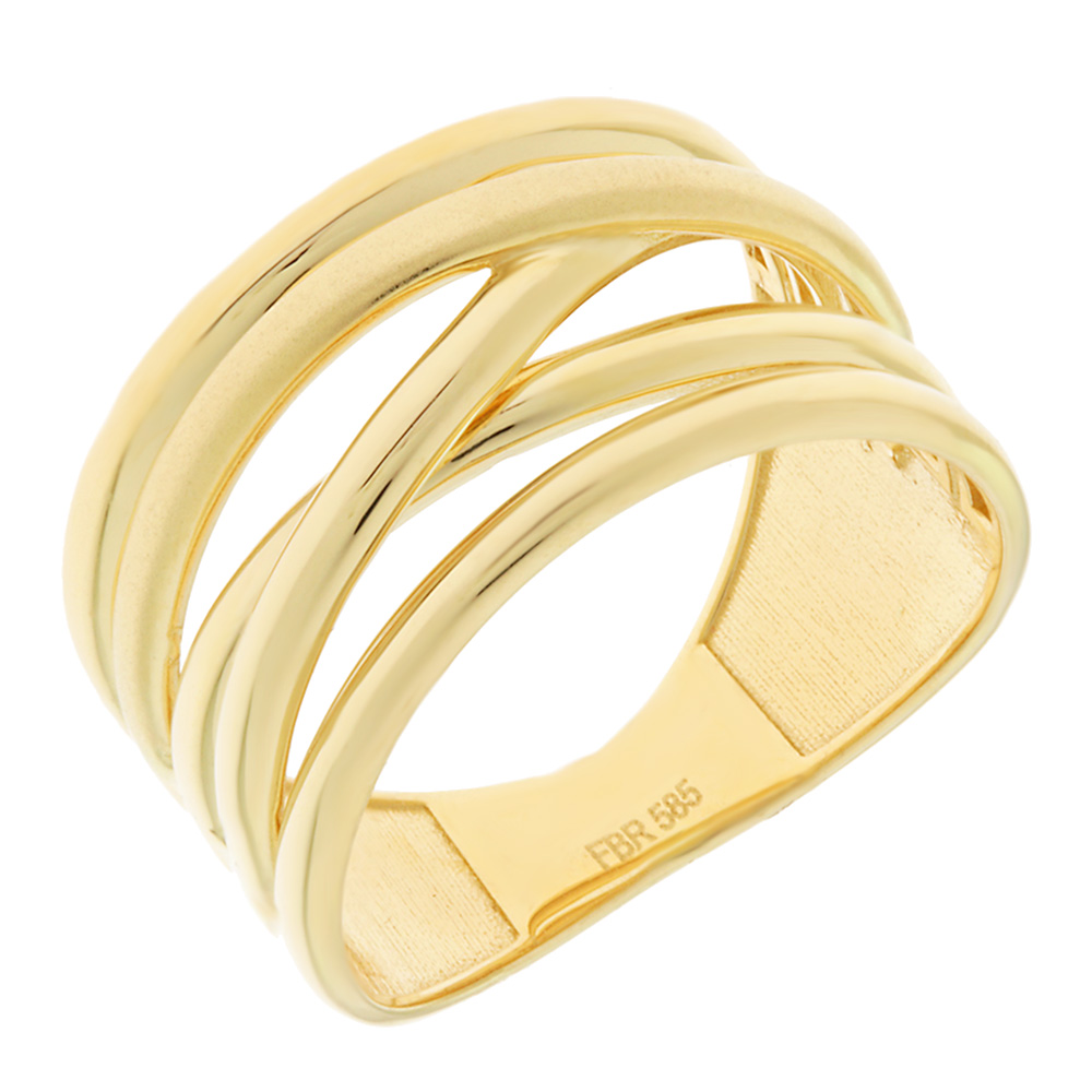 Εντυπωσιακό δαχτυλίδι από κίτρινο χρυσό 14 καρατίων με λουστρέ φινίρισμα.