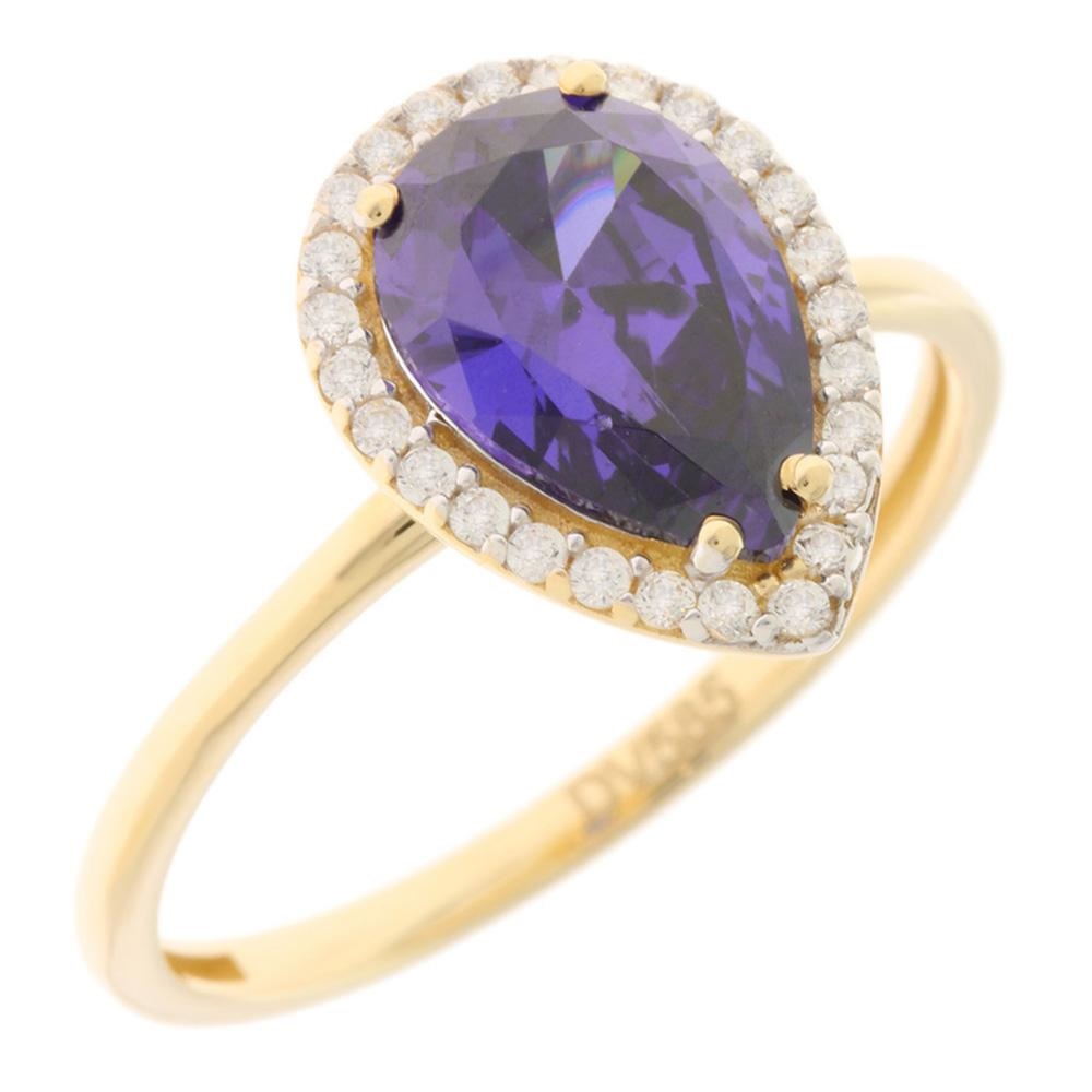 Χρυσό Δαχτυλίδι Ροζέτα με Μωβ Πέτρα 14 Καράτια