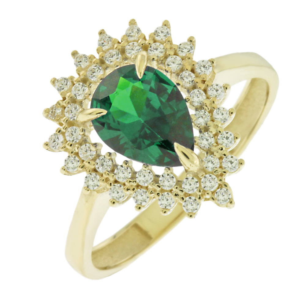 Χρυσό Δαχτυλίδι Ροζέτα με Πράσινη Πέτρα 14 Καράτια