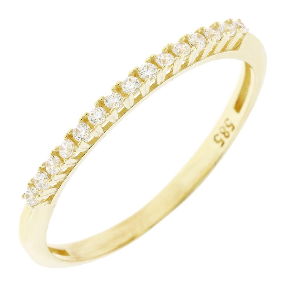 Αυτό το δαχτυλίδι είναι ένα πολυτελές και λαμπερό χρυσό κόσμημα 14 καρατίων (585), διακοσμημένο με πολλαπλές σειρές από πέτρες ζιργκόν.