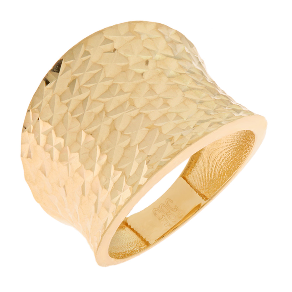 Εντυπωσιακό δαχτυλίδι από κίτρινο χρυσό 14 καρατίων με σφυρήλατο φινίρισμα.