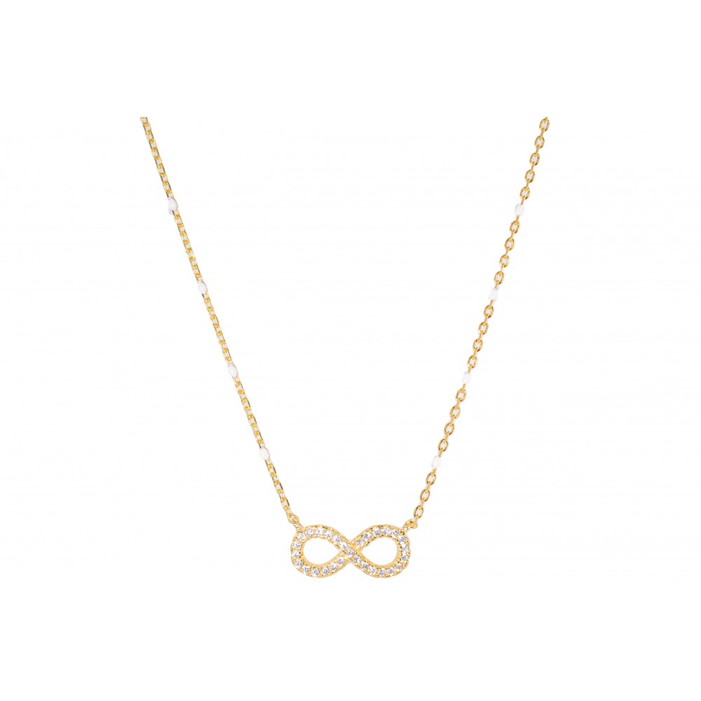 Ασημένιο κολιέ σε κίτρινο χρώμα με άπειρο και πέτρες ζιργκόν.