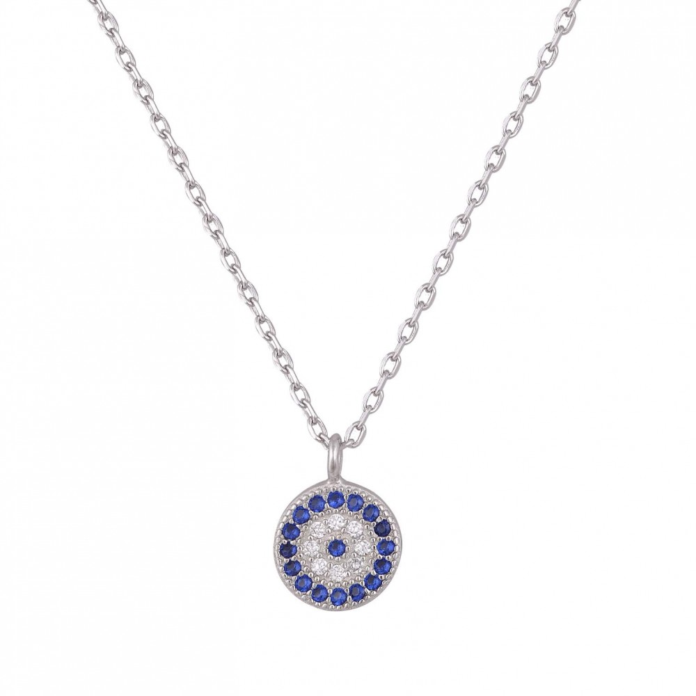 Ασημένιο κολιέ σε λευκό χρώμα με ματάκι και πέτρες ζιργκόν.