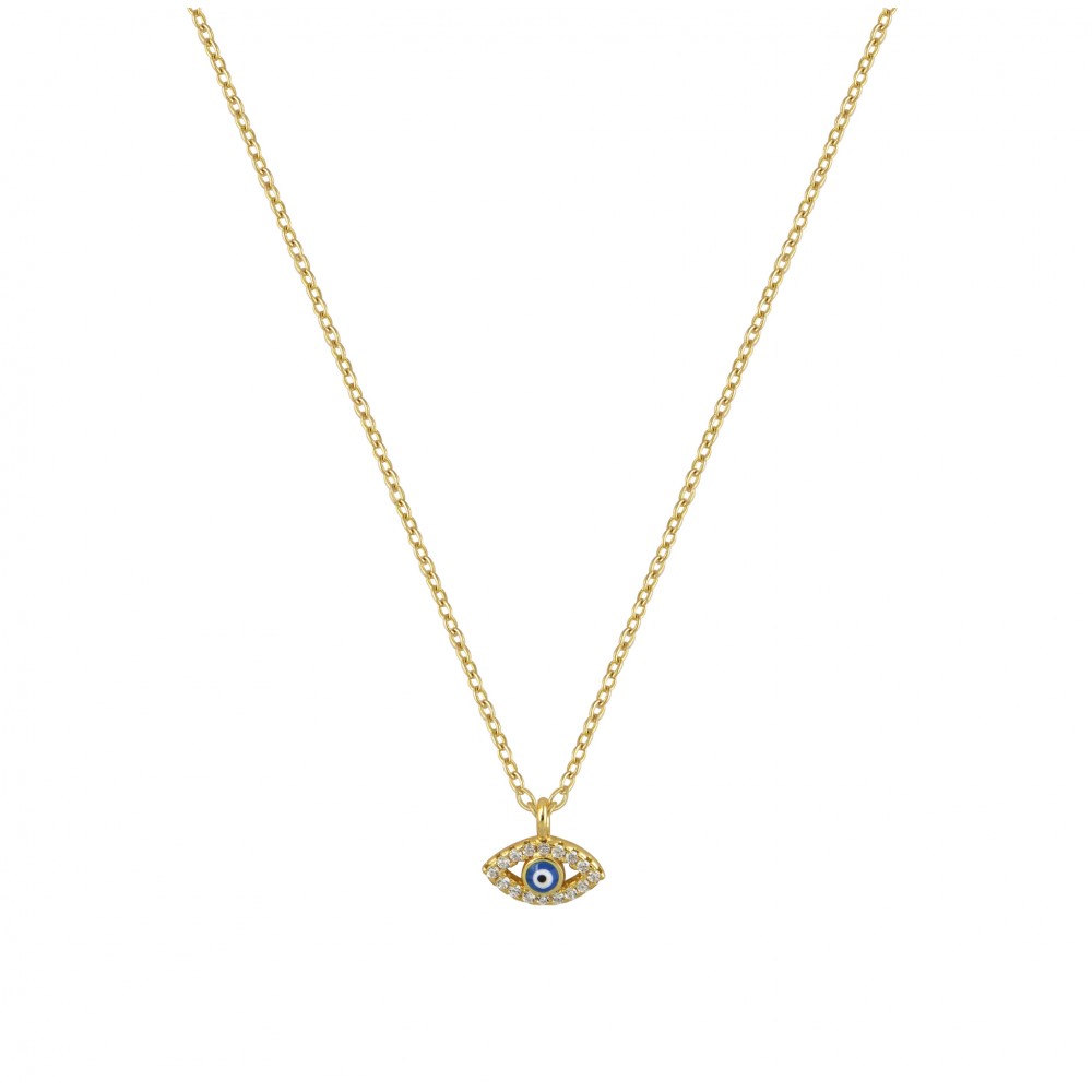 Ασημένιο κολιέ σε κίτρινο χρώμα με ματάκι και πέτρες ζιργκόν.