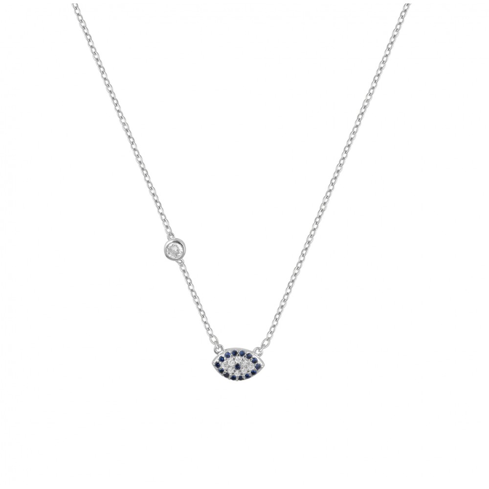 Ασημένιο κολιέ σε λευκό χρώμα με ματάκι και πέτρες ζιργκόν.