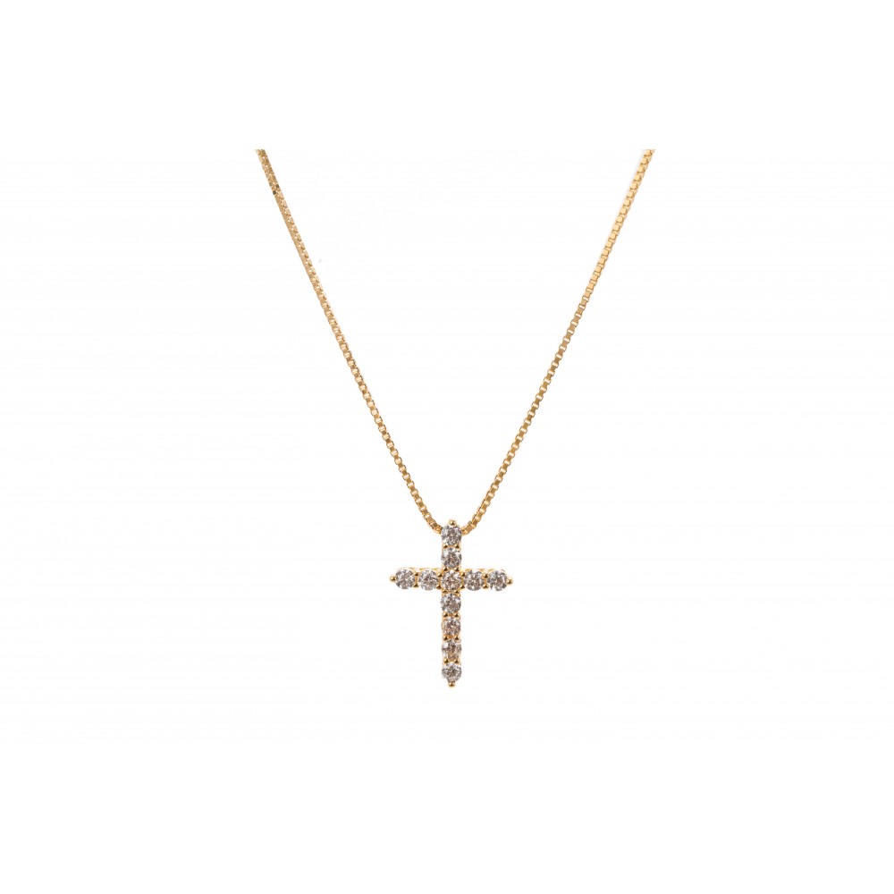 Ασημένιο κολιέ σε κίτρινο χρώμα με σταυρό και πέτρες ζιργκόν.
