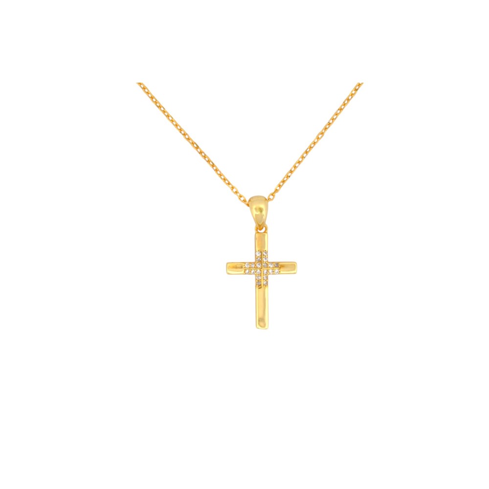 Ασημένιο κολιέ σε κίτρινο χρώμα με σταυρό και πέτρες ζιργκόν.