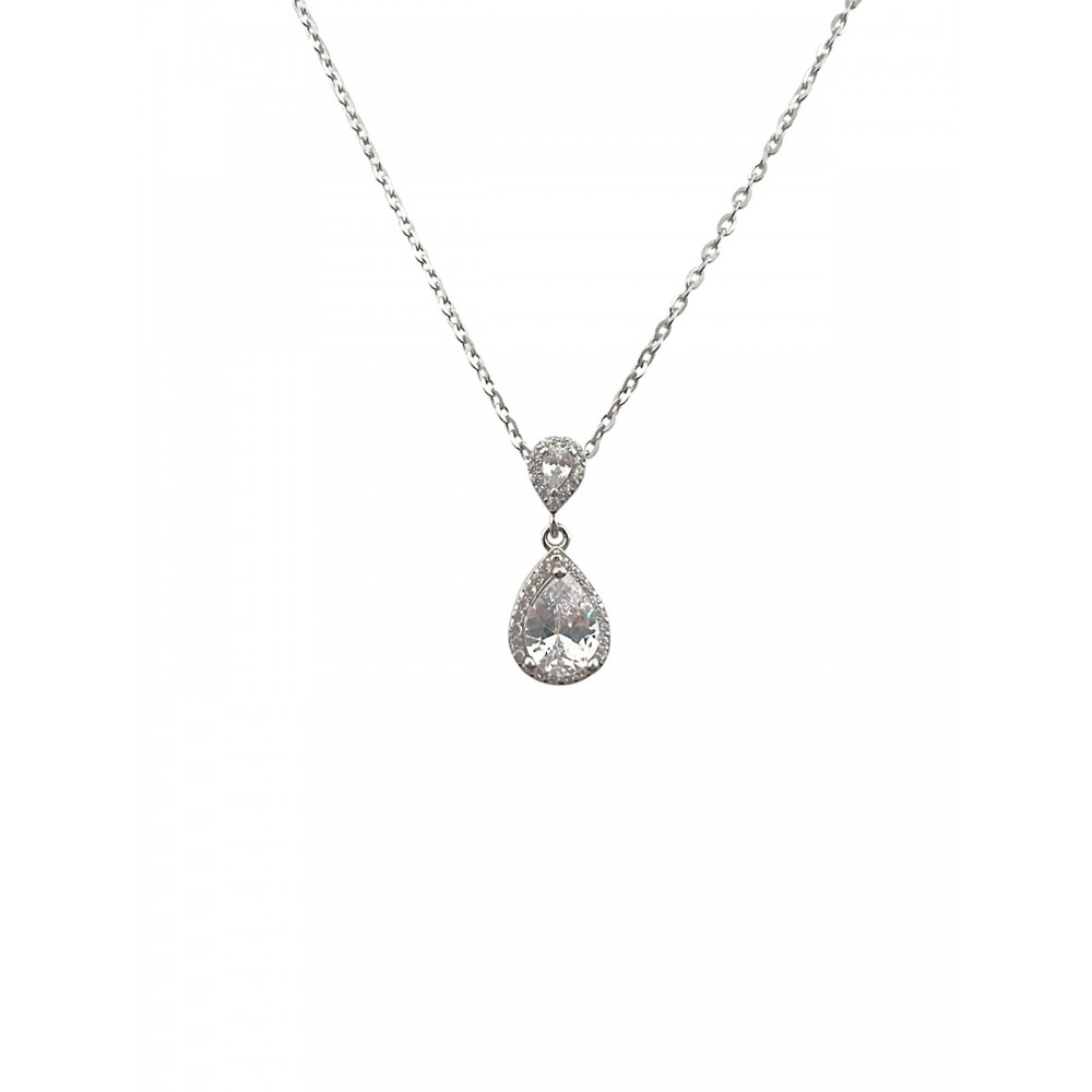Ασημένιο κολιέ σε λευκό χρώμα στολισμένο με λευκές πέτρες ζιργκόν.