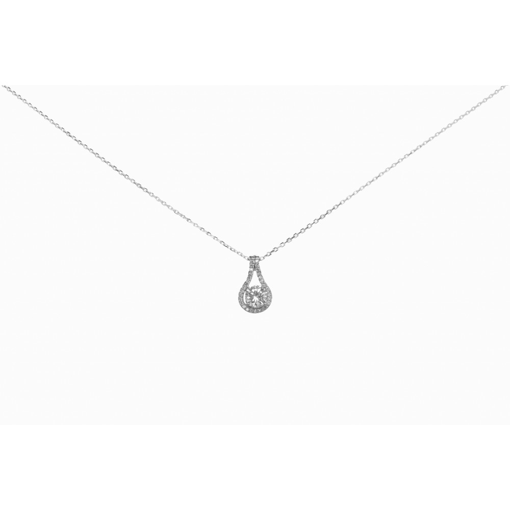 Ασημένιο κολιέ σε λευκό χρώμα στολισμένο με λευκές πέτρες ζιργκόν.