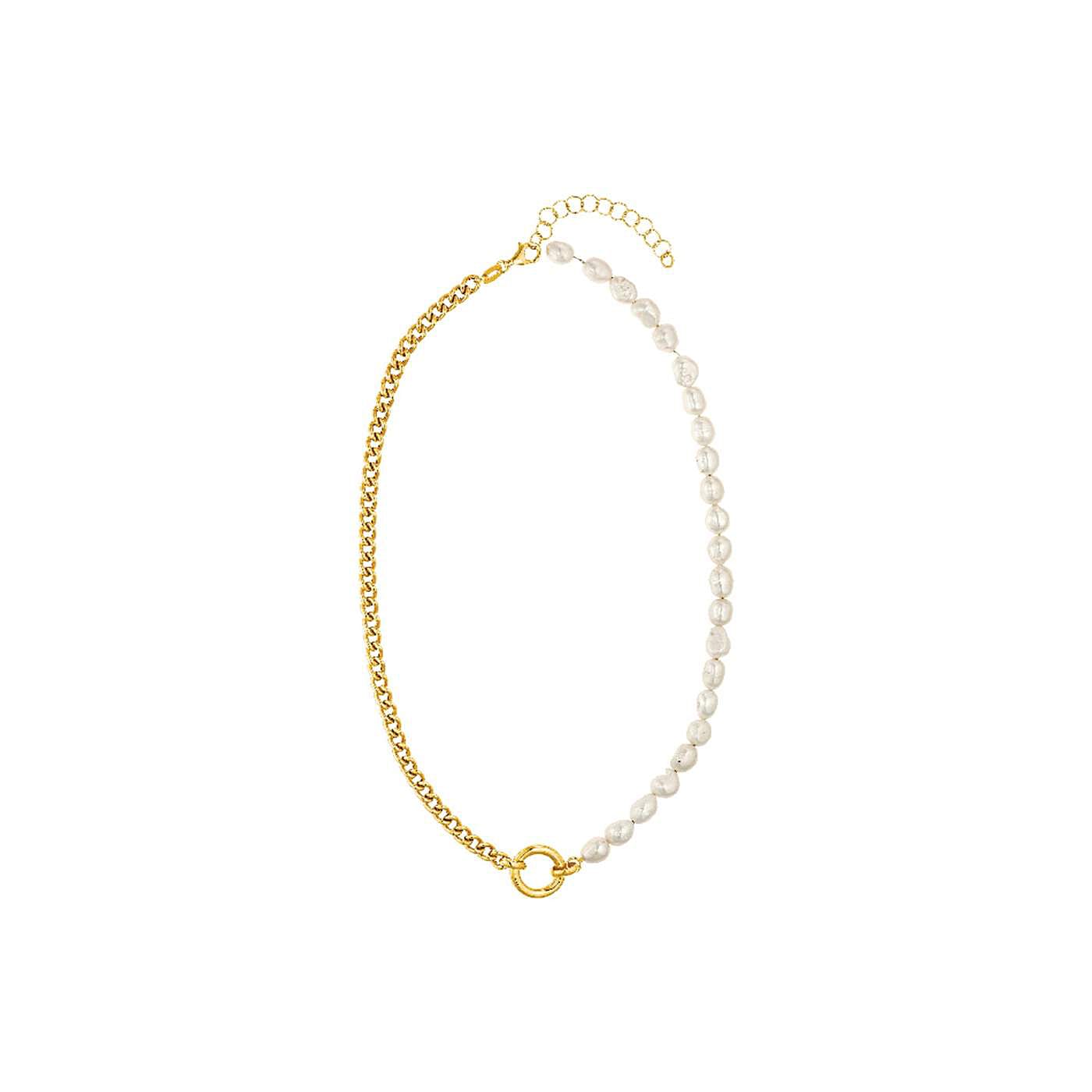 Εντυπωσιακό κολιέ από τη σειρά "Memoires". Ένα μέρος του κολιέ αποτελείται από λευκά μαργαριτάρια και το άλλο από αλυσίδα που συνδέονται σε κύκλο. Το κολιέ είναι από υψηλής ποιότητας Ασήμι 925 και κίτρινο χρυσό 18 καρατιών επιμετάλλωση. Το μήκος του κολιέ είναι 45 εκ, VOGUE. Δωρεάν έξοδα αποστολής και αντικαταβολής σε όλη την Ελλάδα. Vogue κοσμήματα