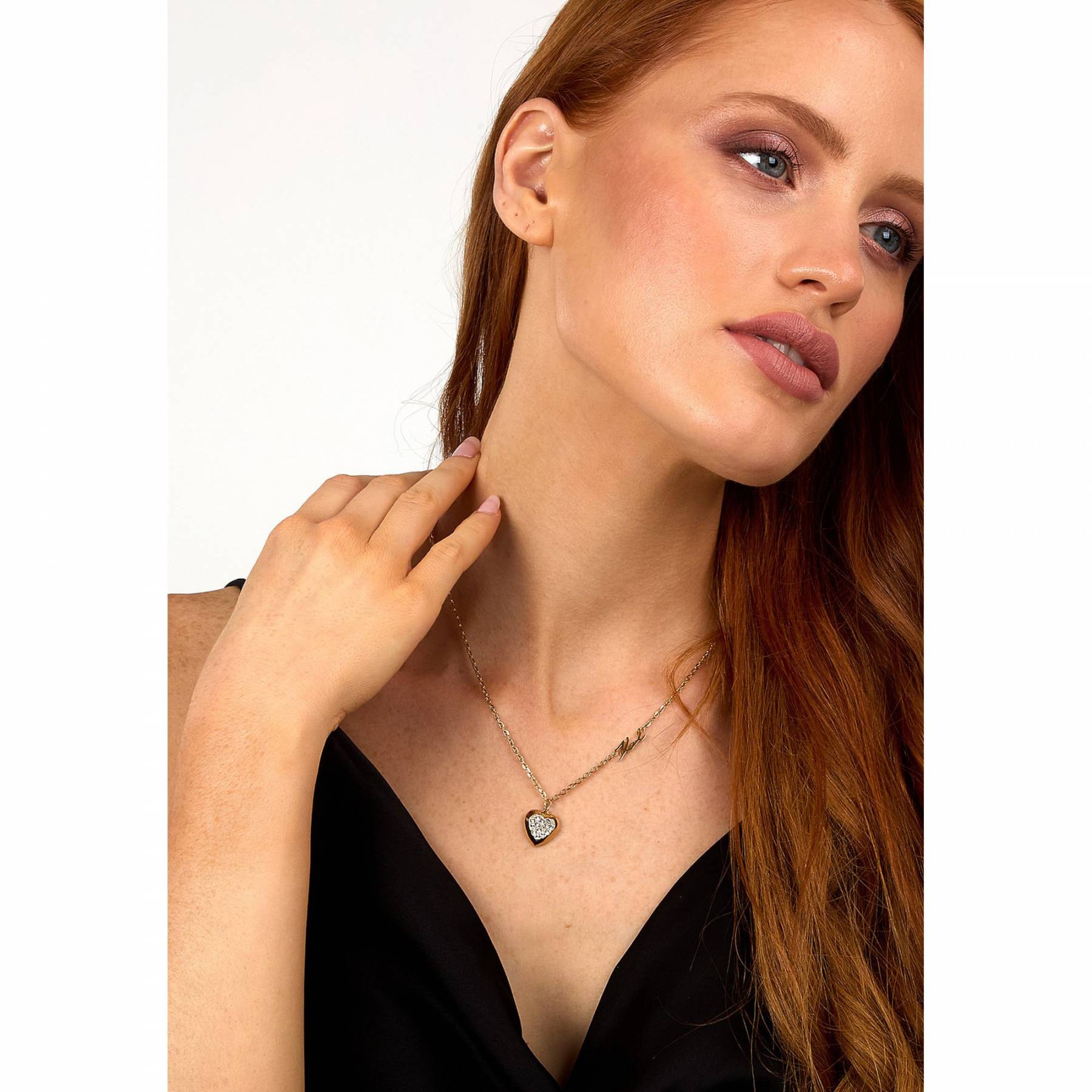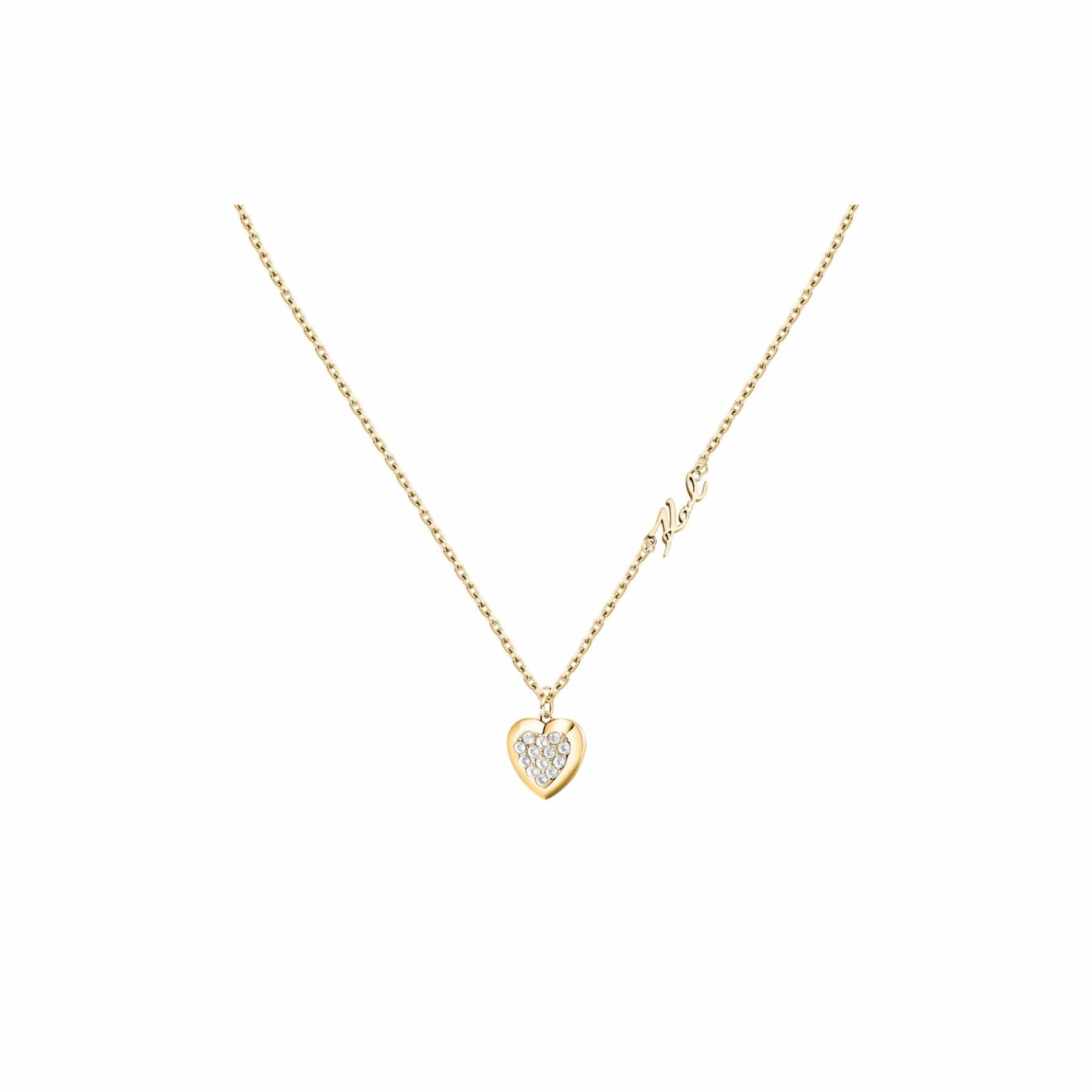 KARL LAGERFELD CHARMS Γυναικείο Κολιέ Χρυσό Με Καρδιά Με Πέτρες Και Λογότυπο