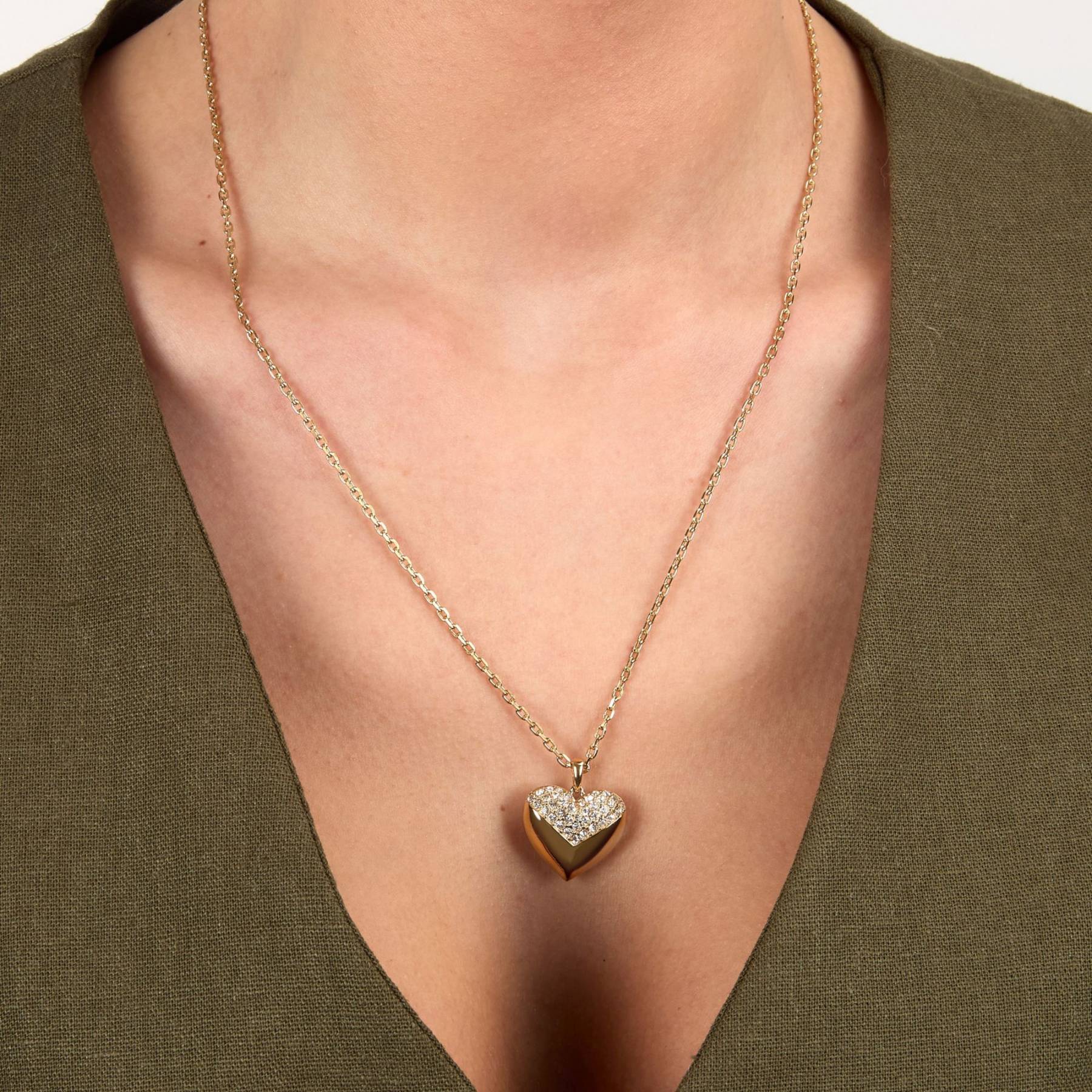 Γυναικείο κολιέ KARL LAGERFELD PAVE AMOUR KLBJW01 χρυσού χρώματος με σχέδιο καρδιά με πέτρες και λογότυπο(50+5cm).