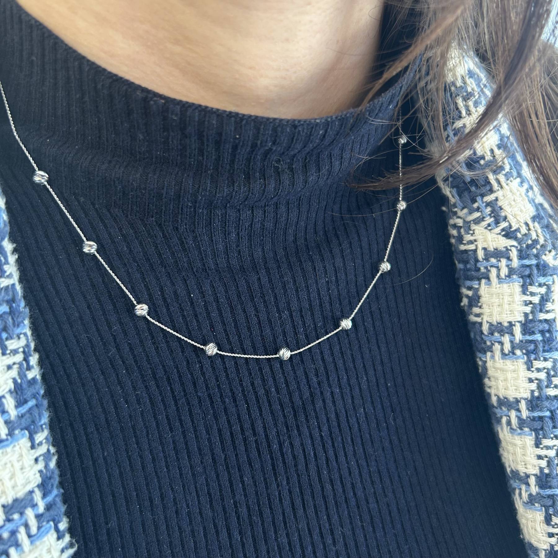 Κολιέ Λευκό Κ14 με Διαμανταρισμένες Μπίλιες 5cg.06.1212bc