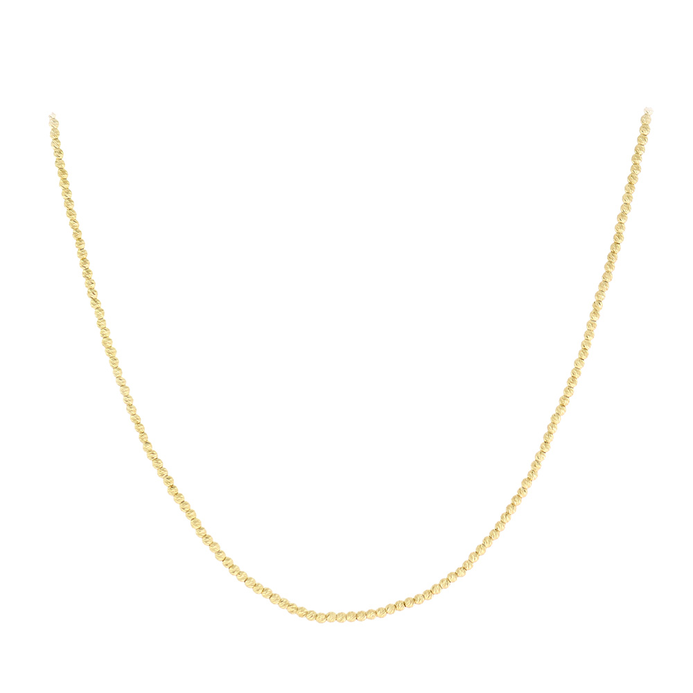 Αυτή η λεπτή χρυσή αλυσίδα λαιμού ξεχωρίζει για τον κομψό και διακριτικό σχεδιασμό της με μικρούς, στρογγυλούς κρίκους που δημιουργούν μια λαμπερή και φίνα υφή. Ένα διαχρονικό κόσμημα που προσθέτει διακριτική πολυτέλεια σε κάθε εμφάνιση.