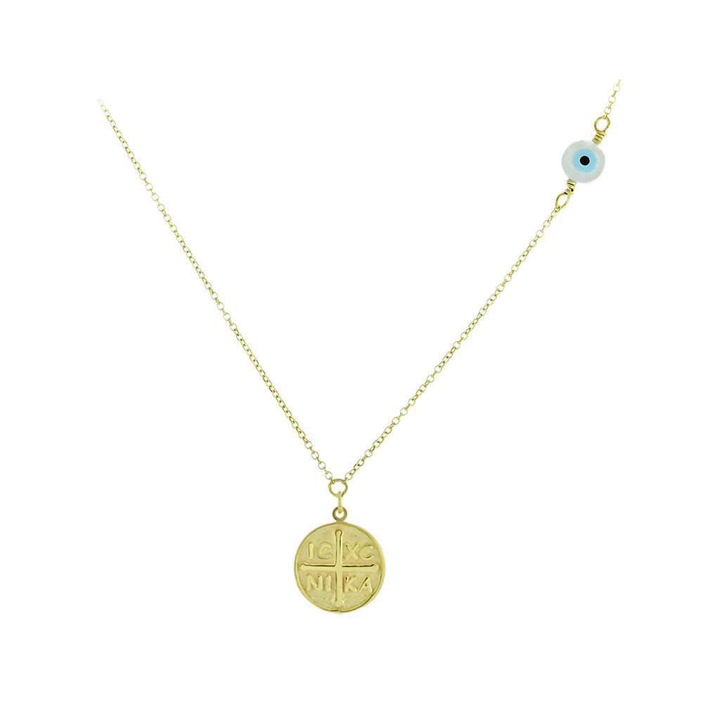 Χρυσό Κολιέ με Κωνσταντινάτο και Ματάκι 9 Καράτια