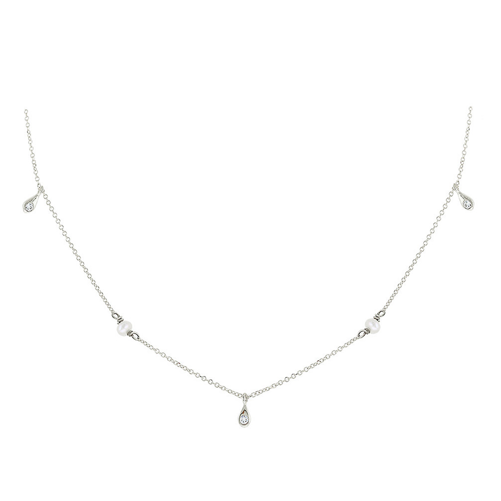 Χρυσό Κολιέ με Μονοπετράκια και Μαργαριτάρια 9 Καράτια