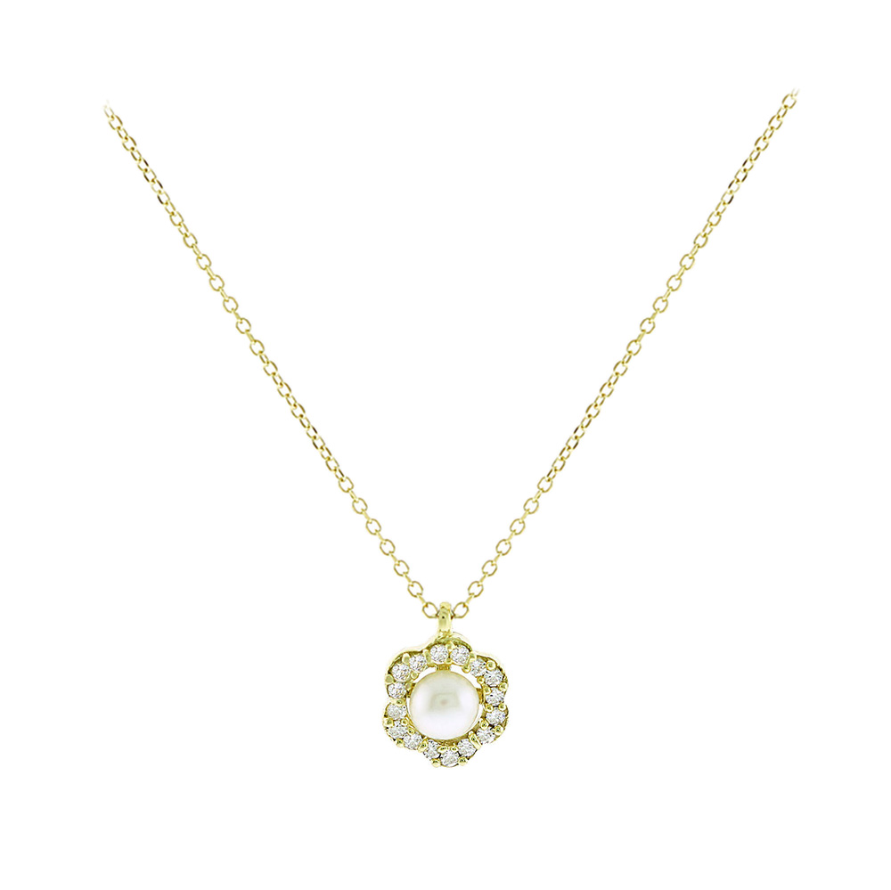 Χρυσό Κολιέ Ροζέτα με Μαργαριτάρι 9 Καράτια Κίτρινο