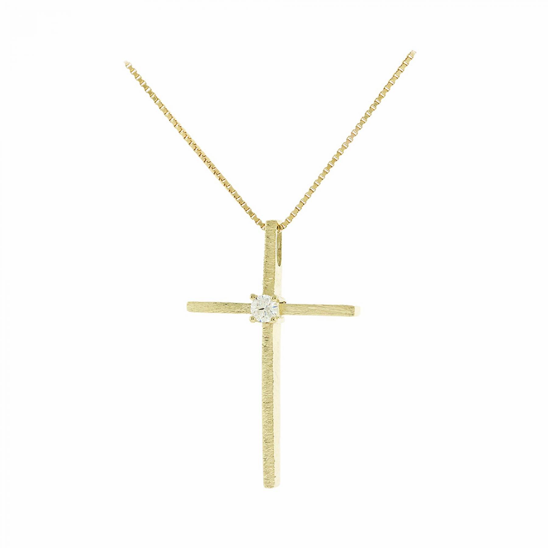 Χρυσό Κολιέ Σταυρός με Πέτρα Ζιργκόν 14 Καράτια