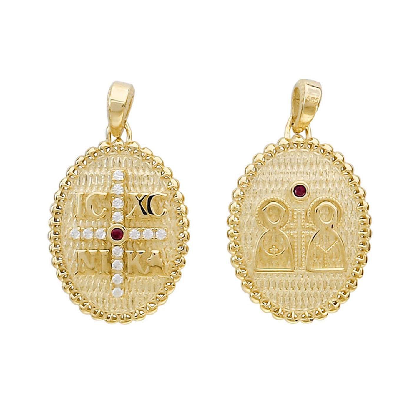 Χρυσό Φυλαχτό με Πέτρες Ζιργκόν 14 Καράτια 2 Όψης
