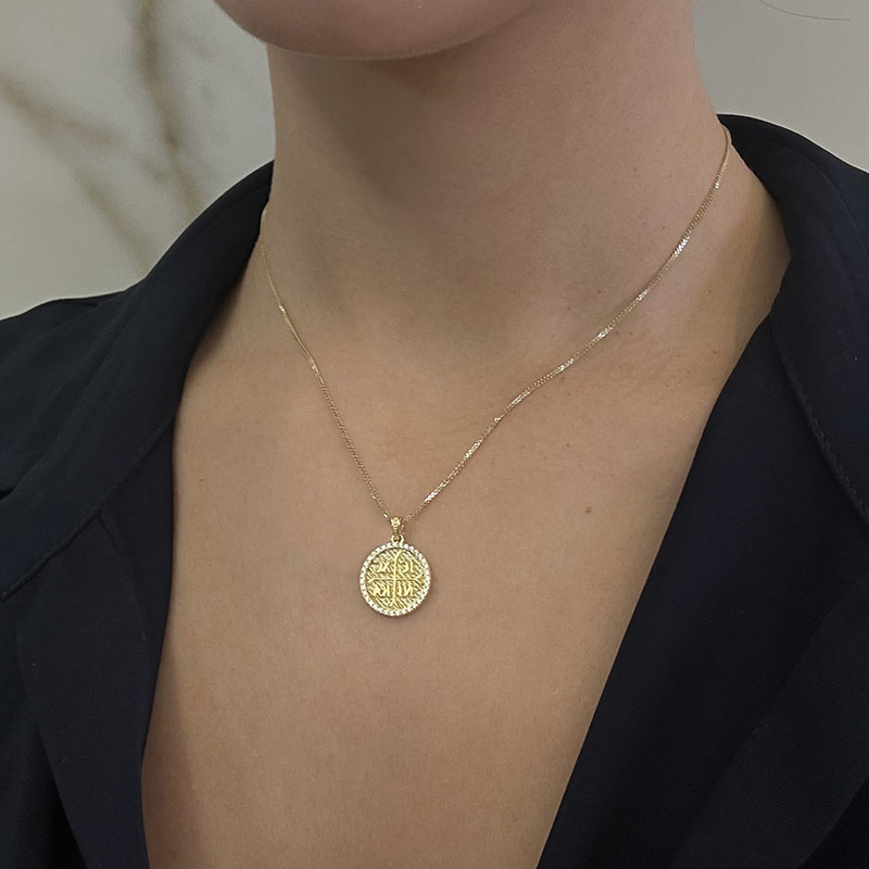 Χρυσό Φυλαχτό - Κωνσταντινάτο από κίτρινο χρυσό 9 καρατίων με λευκές πέτρες ζιργκόν. Μπορείτε να το συνδυάσετε με μια παραμάνα ή μια αλυσίδα. Δωρεάν έξοδα αποστολής και αντικαταβολής σε όλη την Ελλάδα.