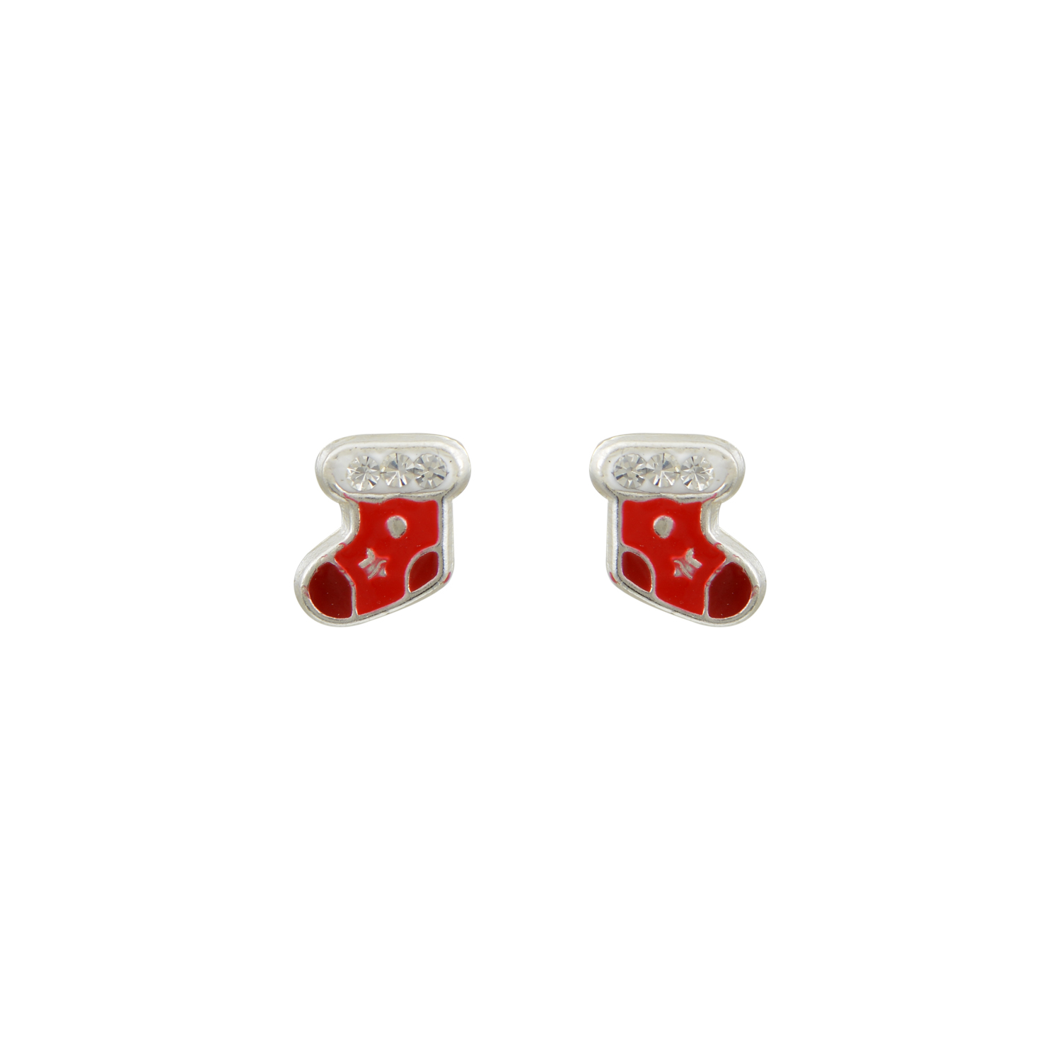 Ασημένια Παιδικά Σκουλαρίκια "Χριστουγεννιάτικες Κάλτσες" 925