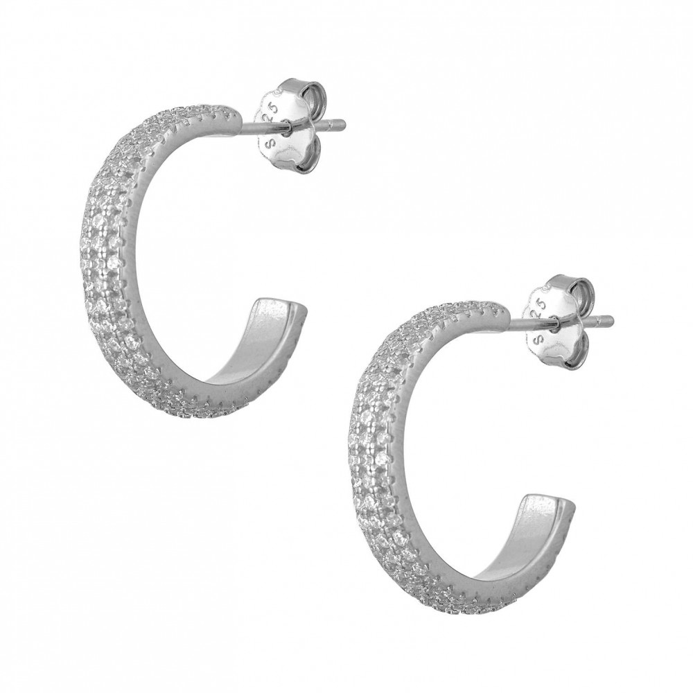 Ασημένια σκουλαρίκια 925 σε κρίκο στολισμένα με πέτρες ζιργκόν