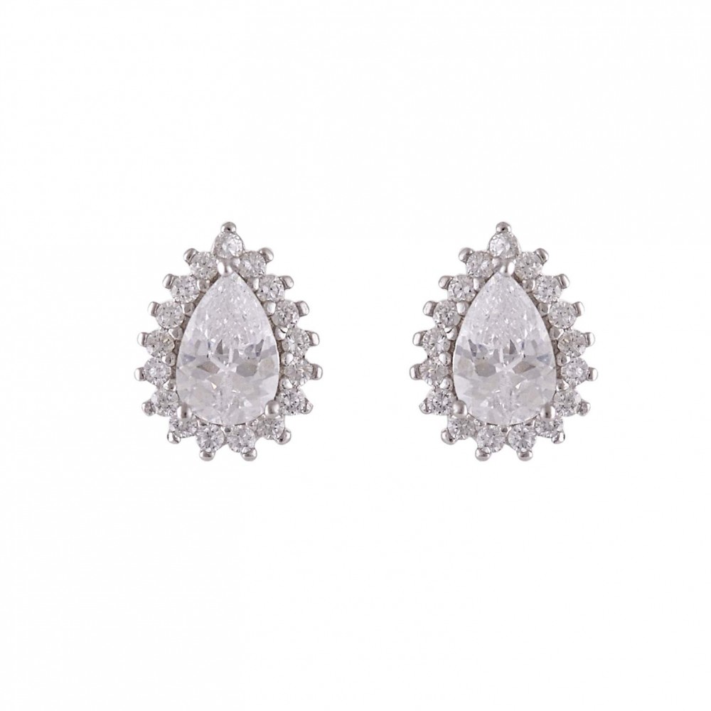 Ασημένια σκουλαρίκια σε λευκό χρώμα με πέτρες ζιργκόν.